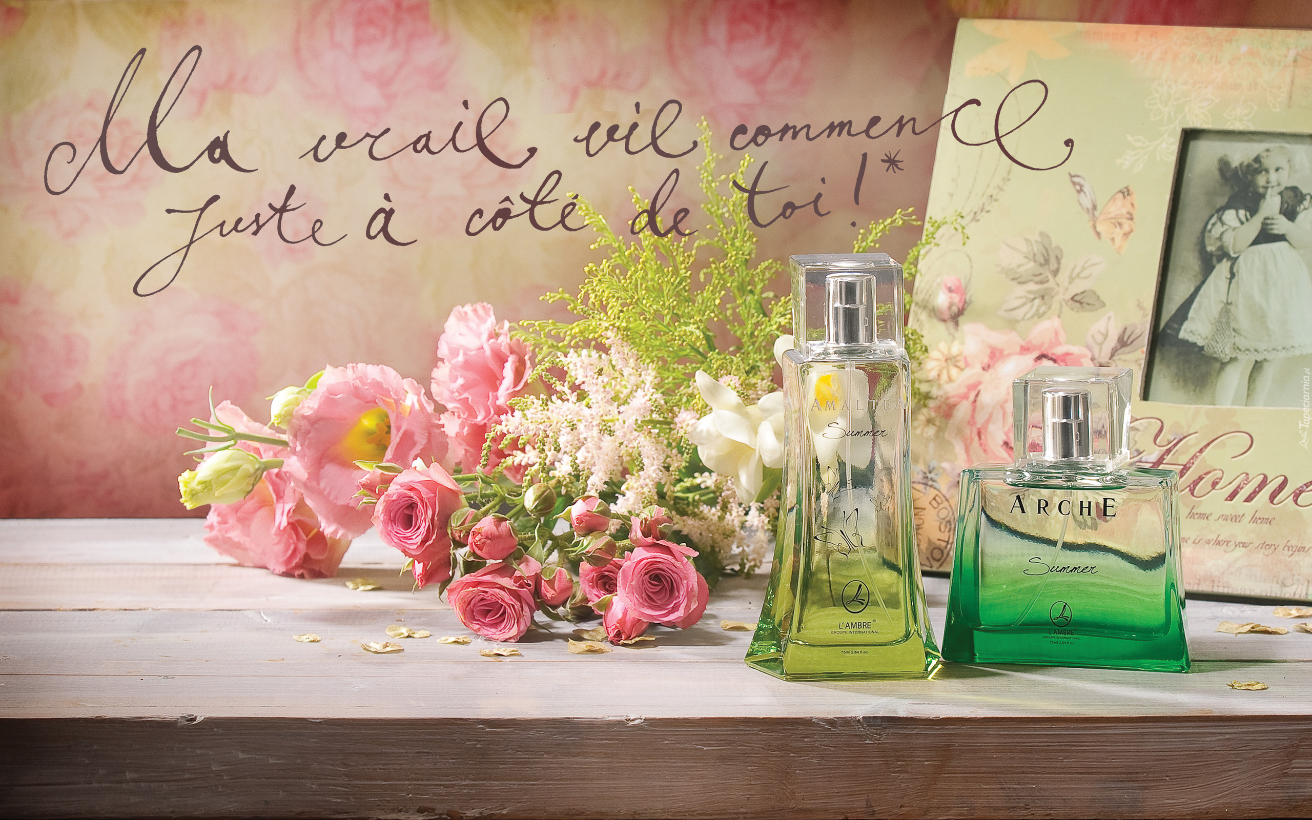 Edytor tapety: Perfumy i kwiaty obok starej fotografii