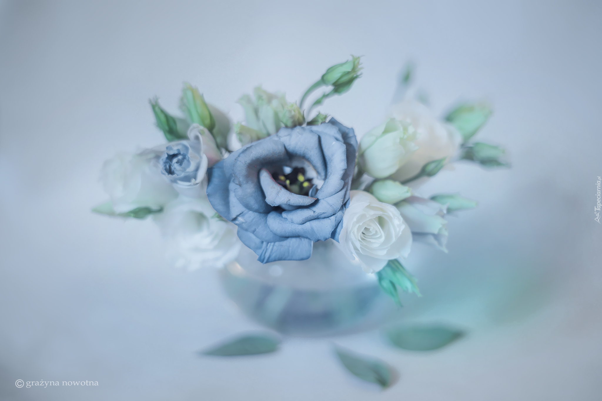 Edytor tapety: Niebieskie i białe kwiaty w wazoniku