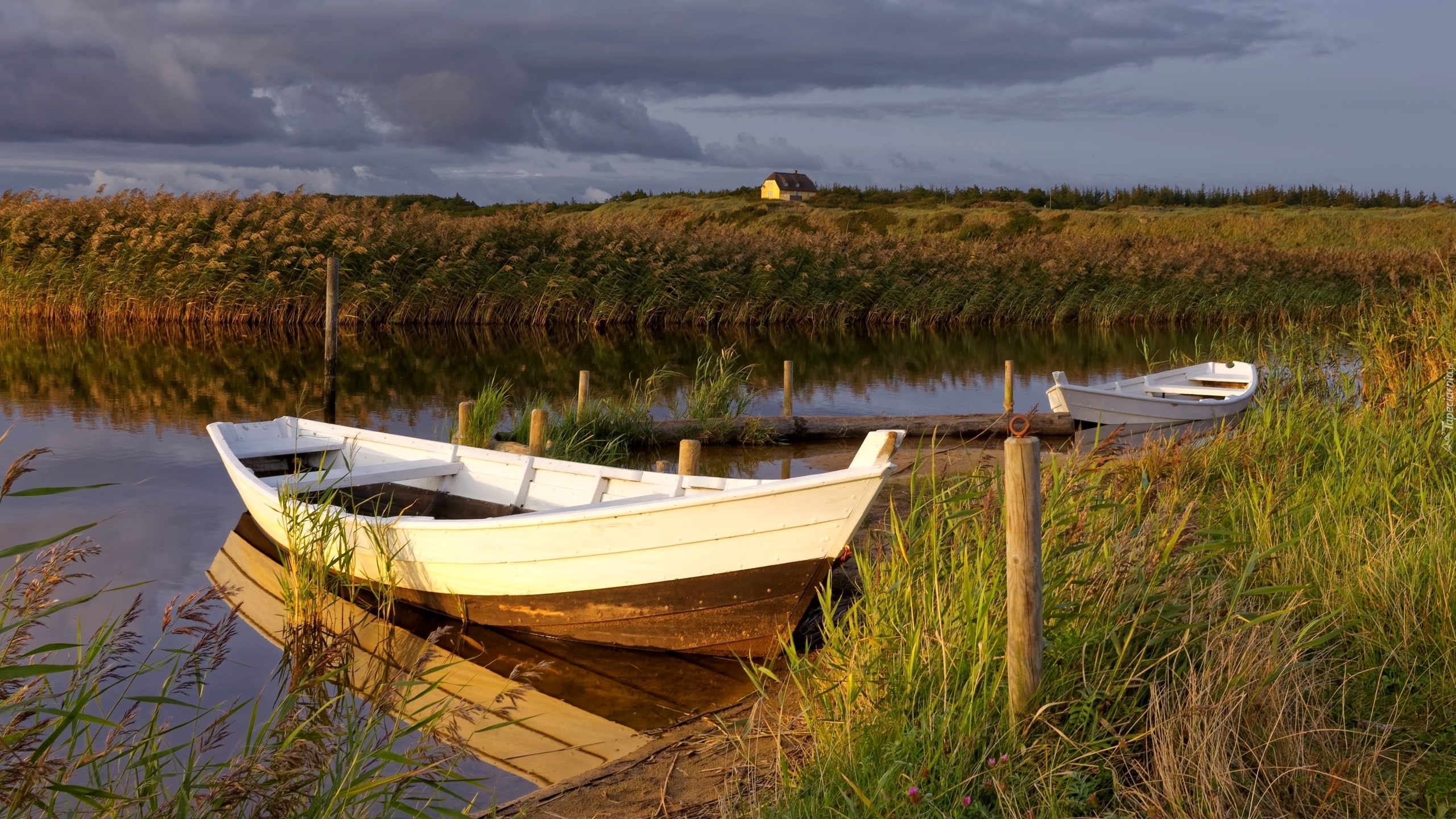 Edytor tapety: Łódki na brzegu jeziora