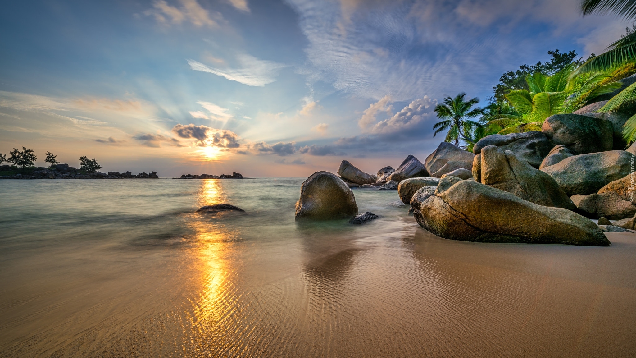 Edytor tapety: Głazy na plaży przy brzegu morza