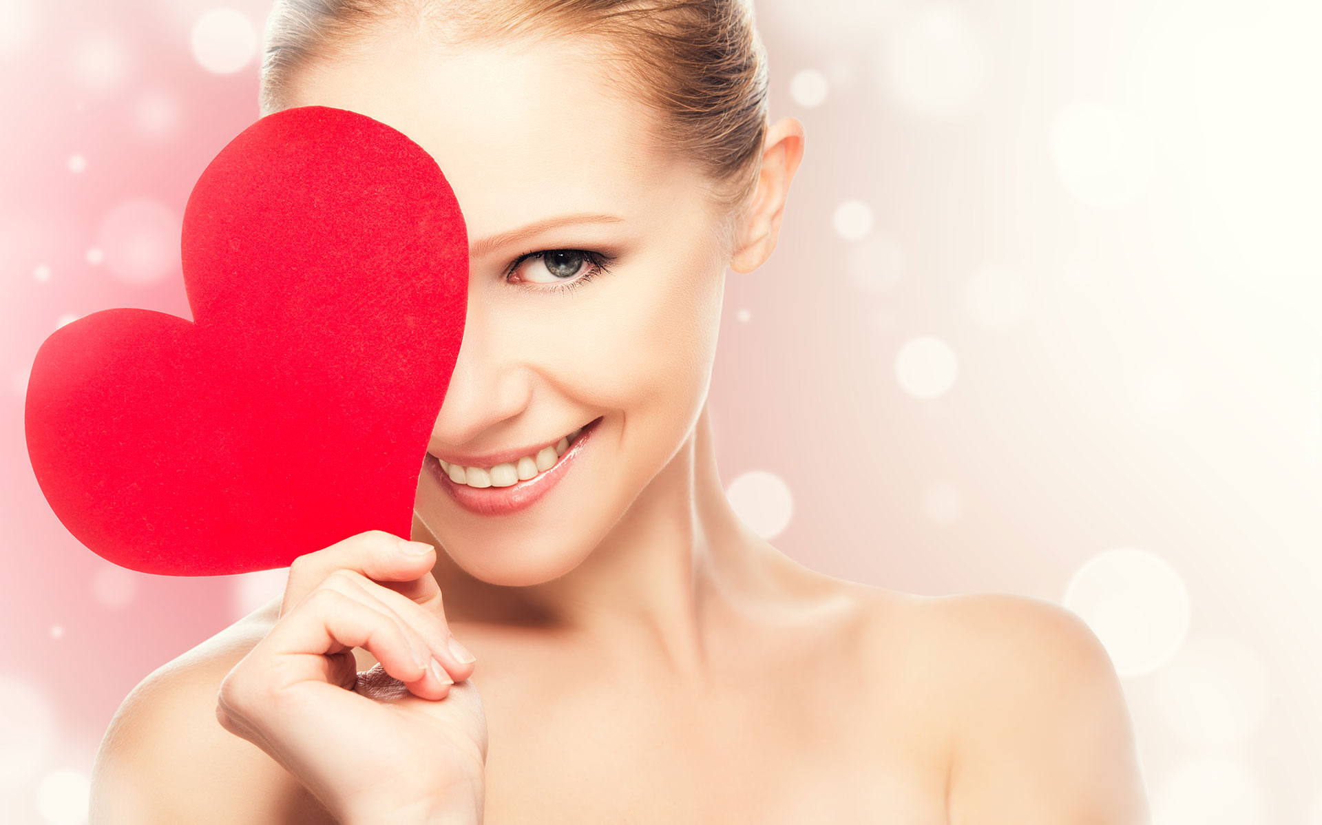 Edytor tapety: Uśmiechnięta blondynka z sercem w dłoni