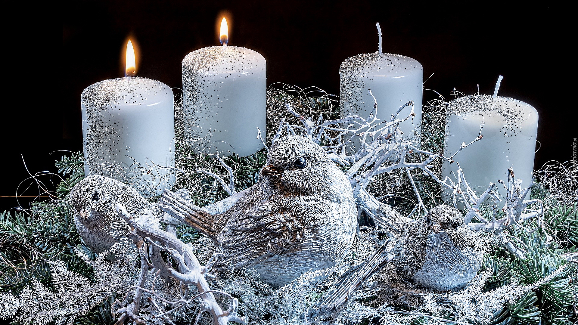 Edytor tapety: Dwie zapalone świece w stroiku adwentowym