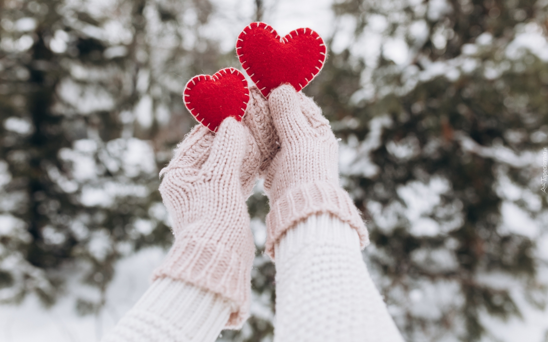 Edytor tapety: Dłonie w rękawicach trzymające serduszka