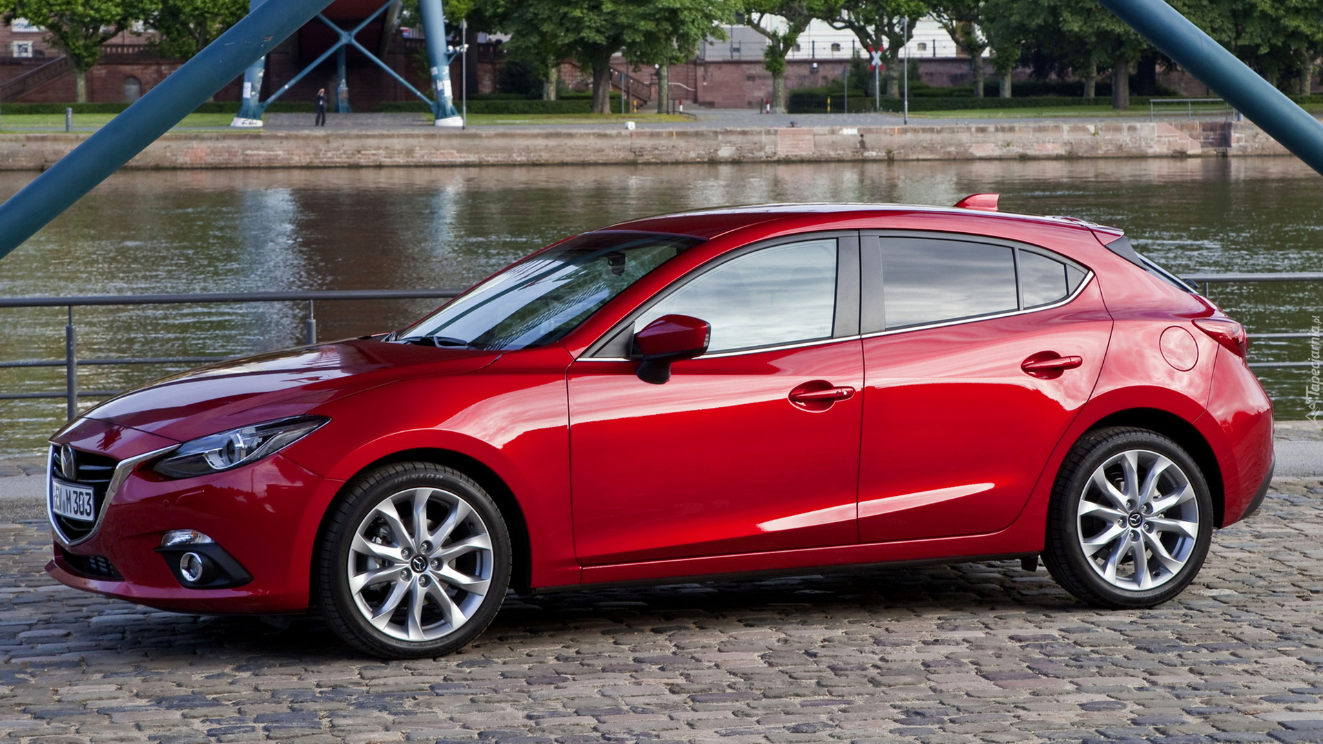 Edytor tapety: Czerwona Mazda 3 bokiem