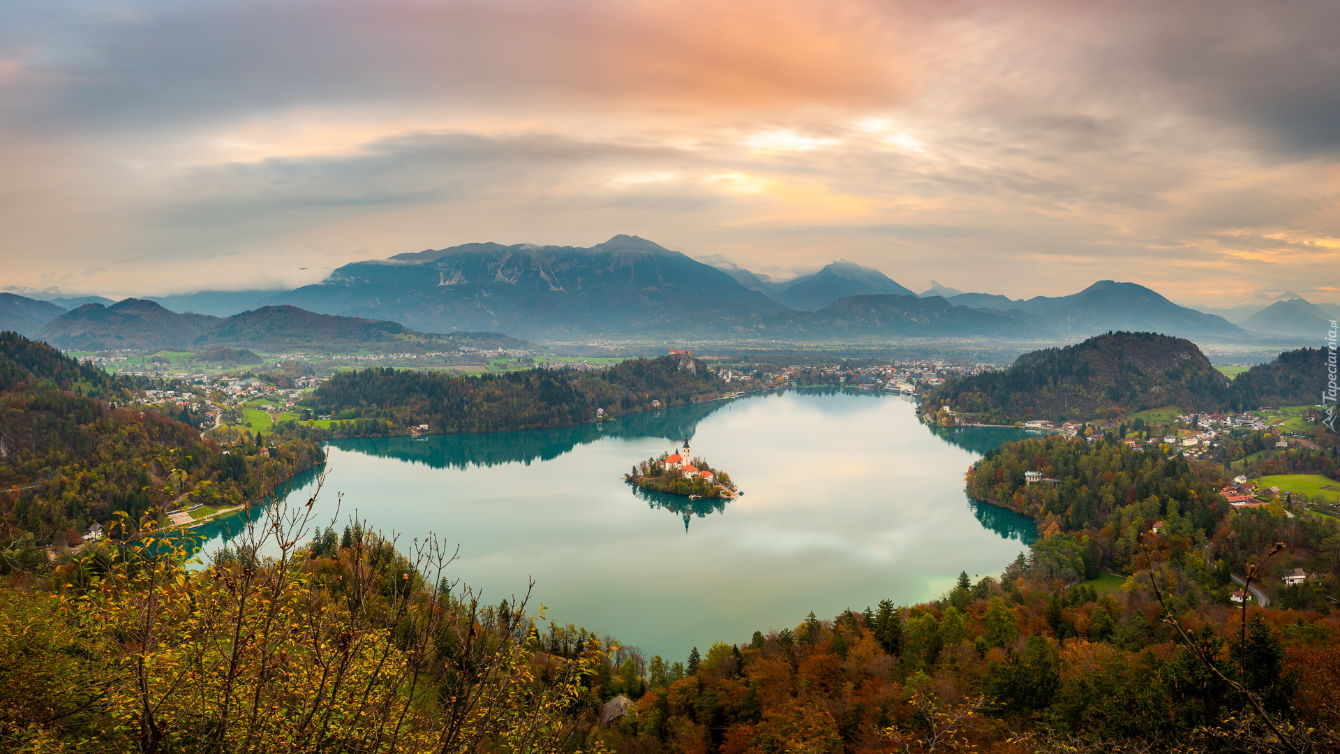 Edytor tapety: Jezioro Bled w Alpach Julijskich
