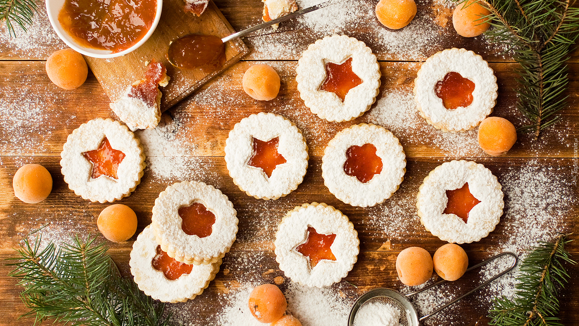 Edytor tapety: Ciasteczka z marmoladą posypane pudrem