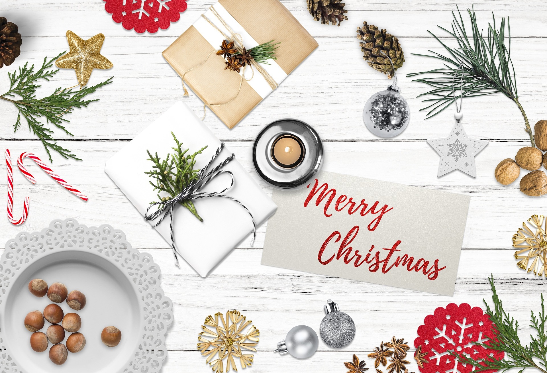 Edytor tapety: Kompozycja bożonarodzeniowa na deskach