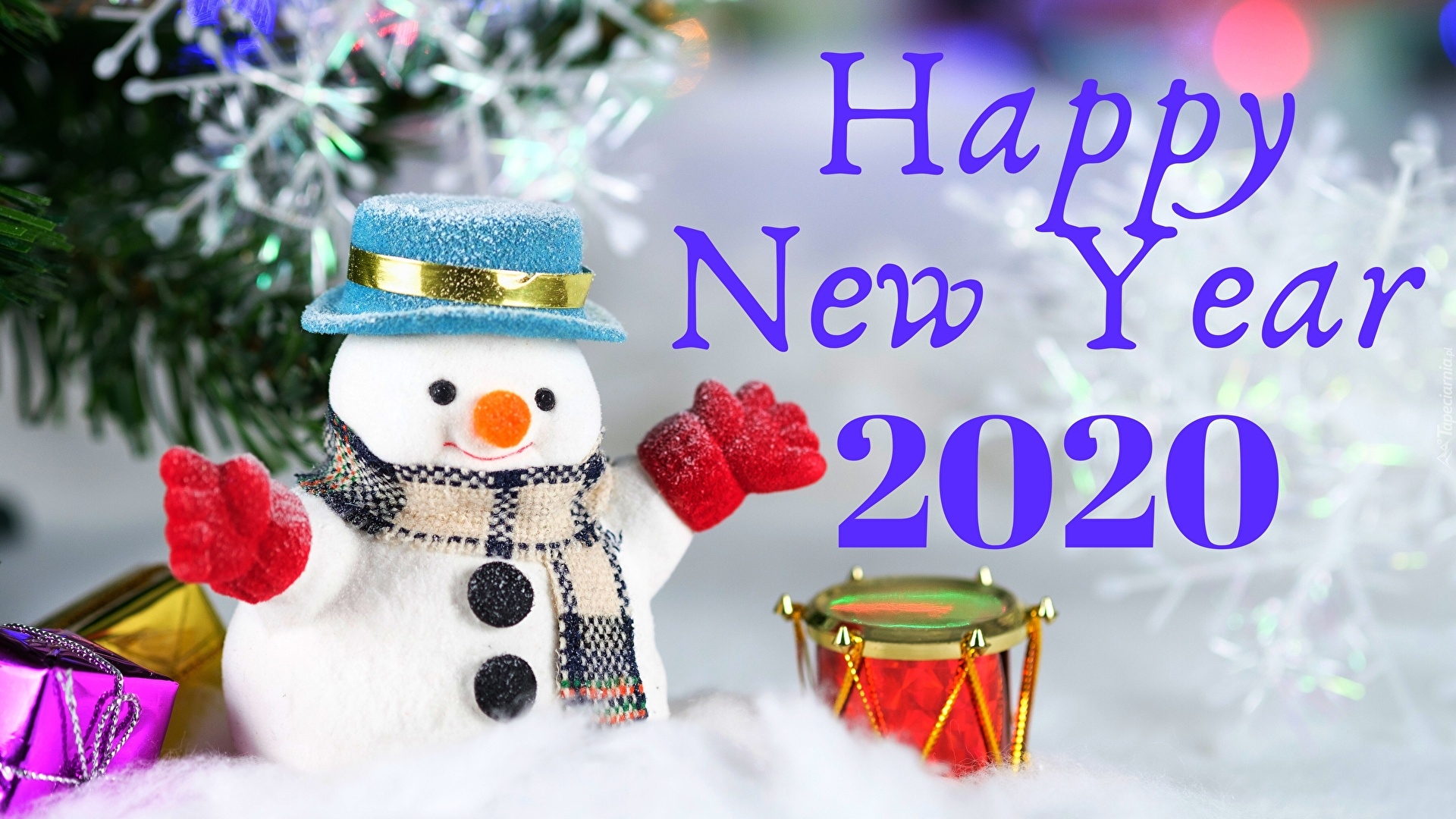 Edytor tapety: Bałwanek obok życzeń noworocznych