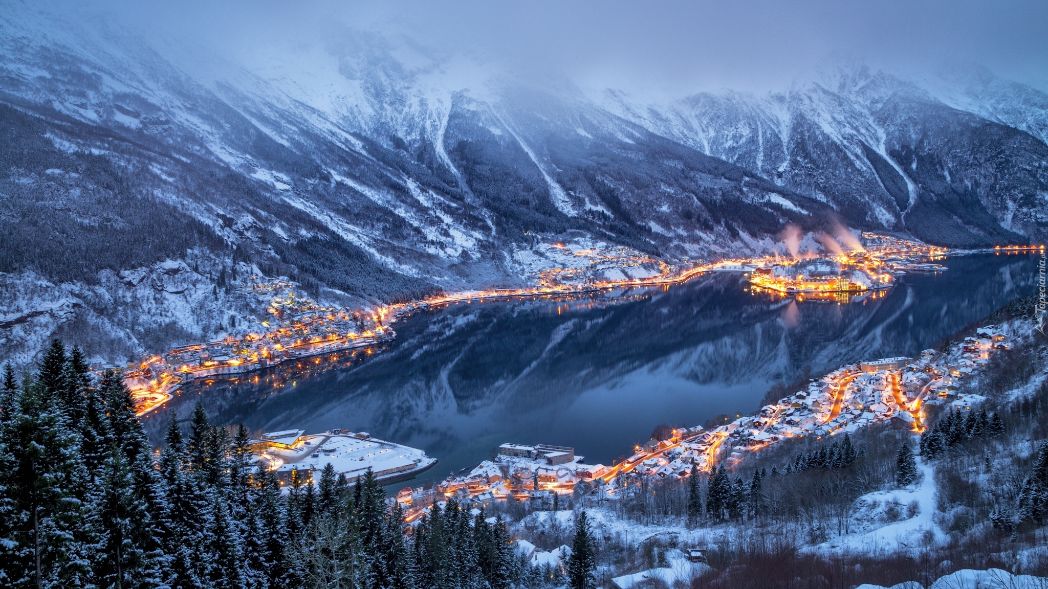 Edytor tapety: Widok na norweskie miasto Odda i fiord Sorfjorden