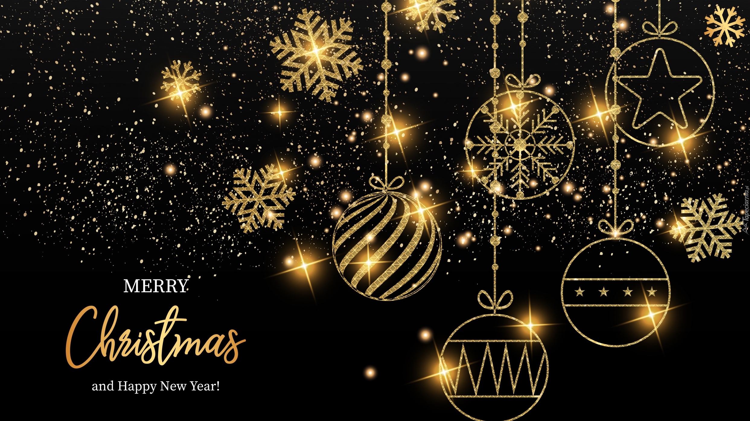 Edytor tapety: Pozłacane bombki i gwiazdki z życzeniami w grafice