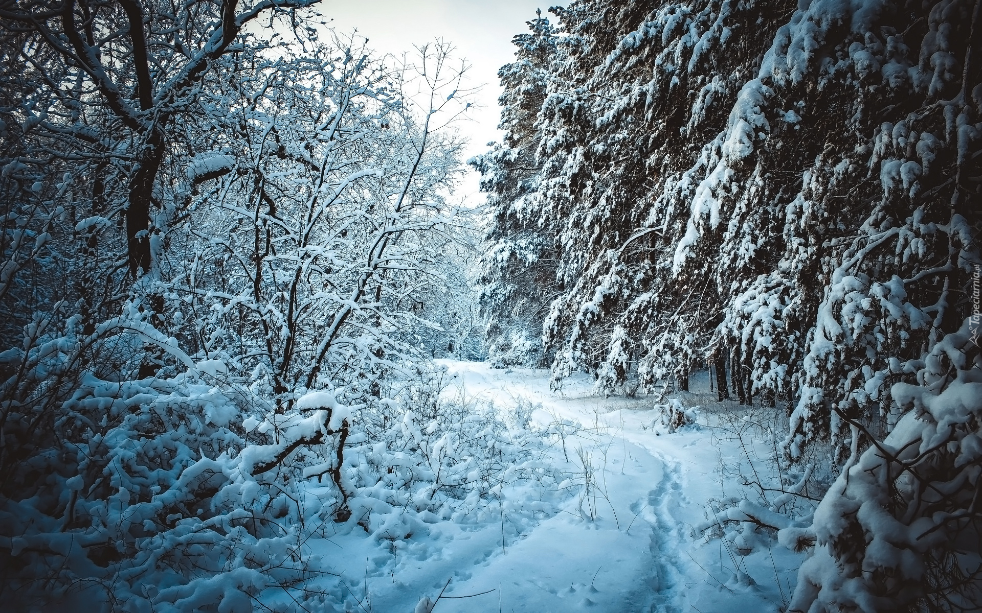 Edytor tapety: Ślady na śniegu w zimowym lesie