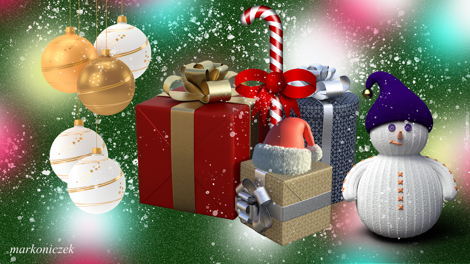 Edytor tapety: Prezenty obok bałwanka w grafice