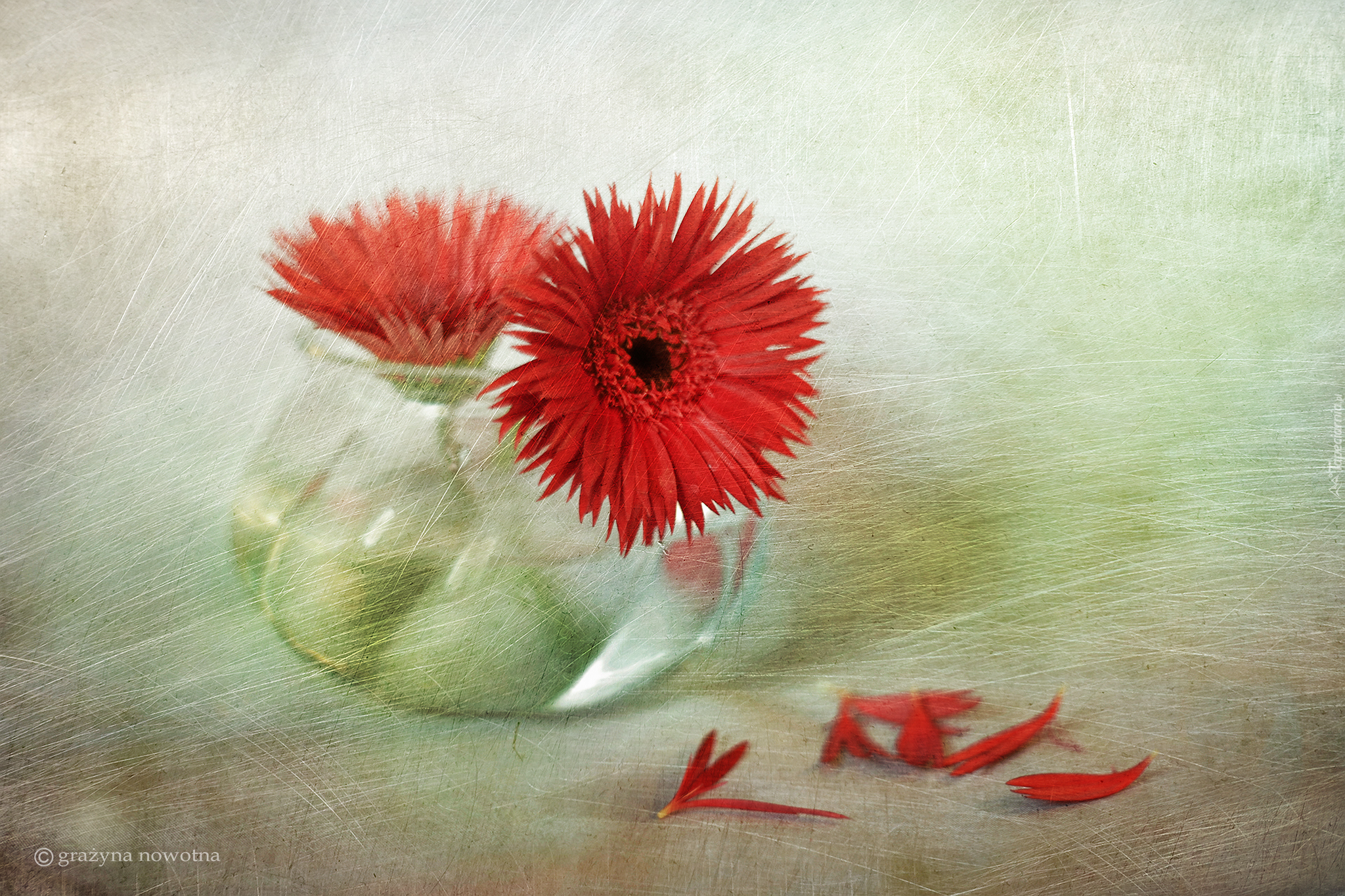 Edytor tapety: Gerbery w szklanym wazoniku