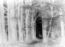 Edytor tapety: Słońce między drzewami w lesie