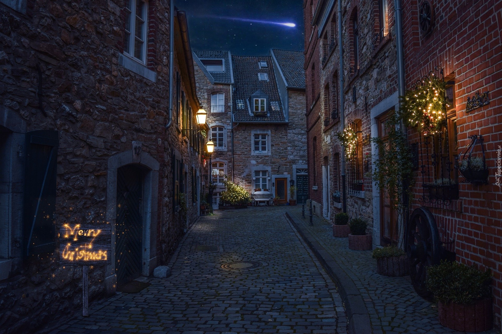 Edytor tapety: Uliczka udekorowana na Boże Narodzenie