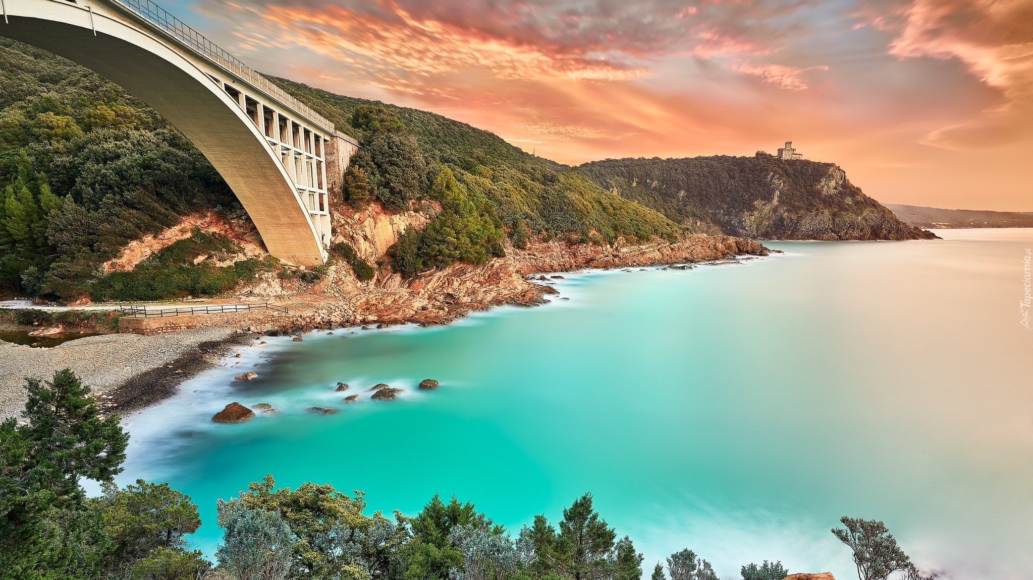 Edytor tapety: Most i zamek Castello Sonnino na Wybrzeżu Liguryjskim