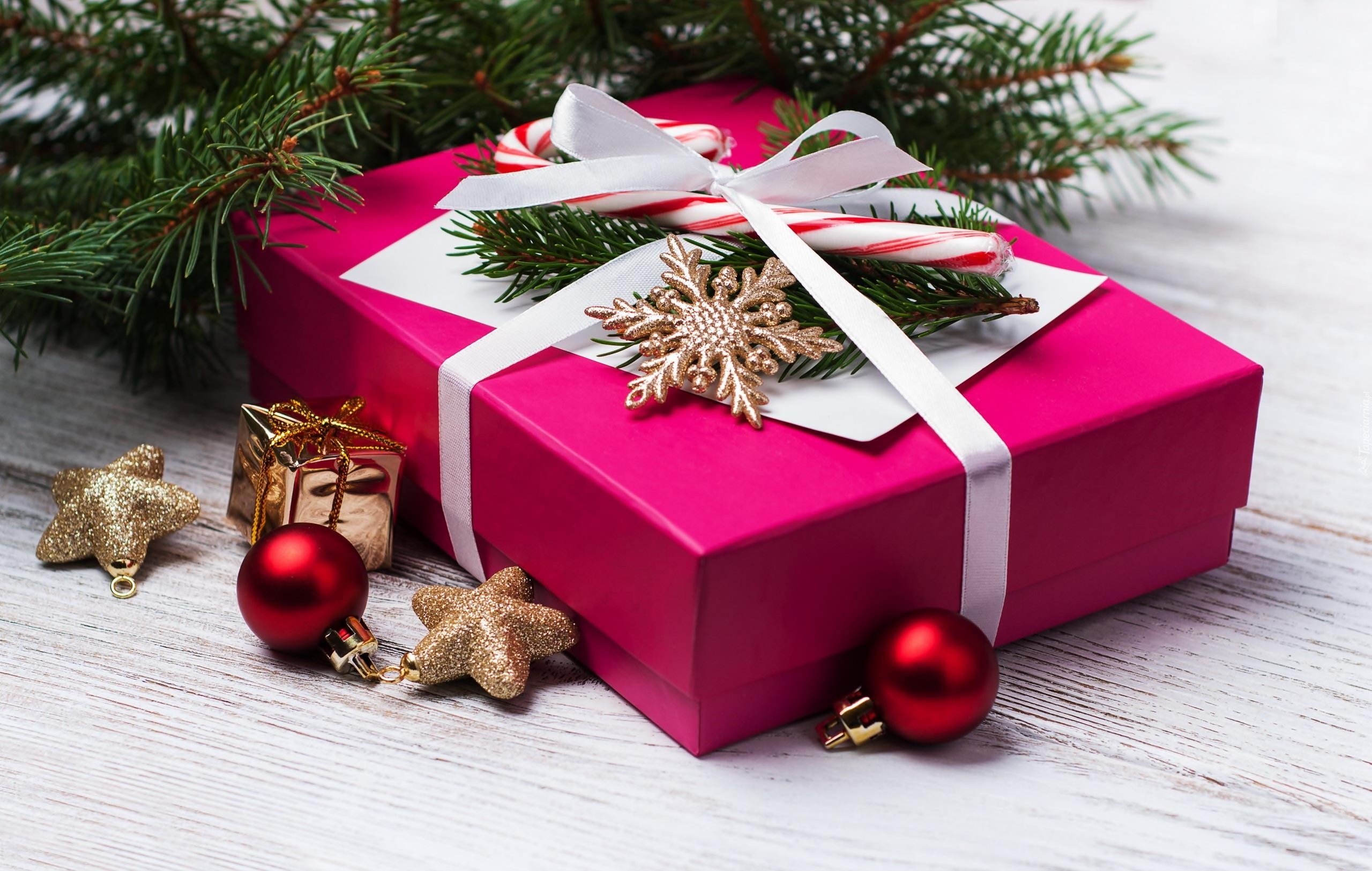 Edytor tapety: Śnieżynka i gałązki świerku na prezencie