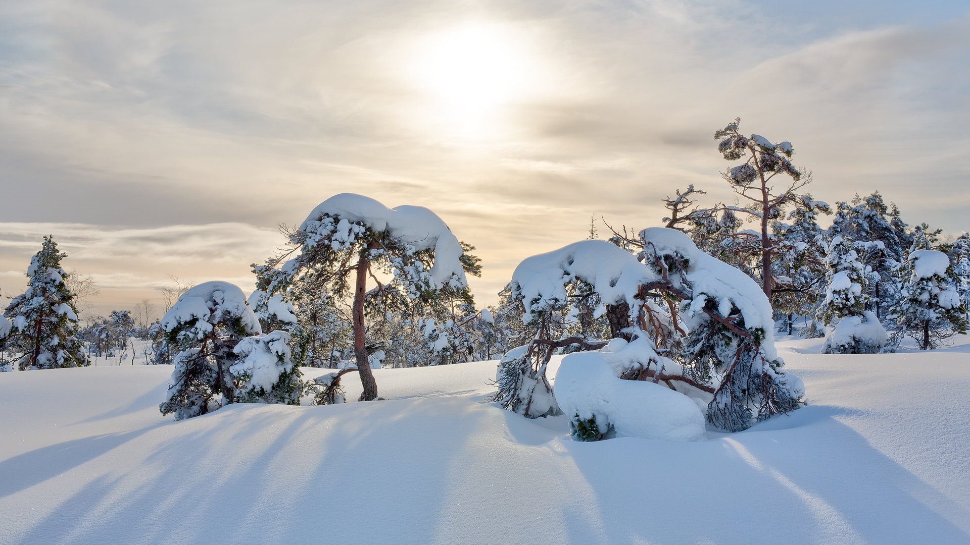 Edytor tapety: Drzewa i krzewy przysypane śniegiem