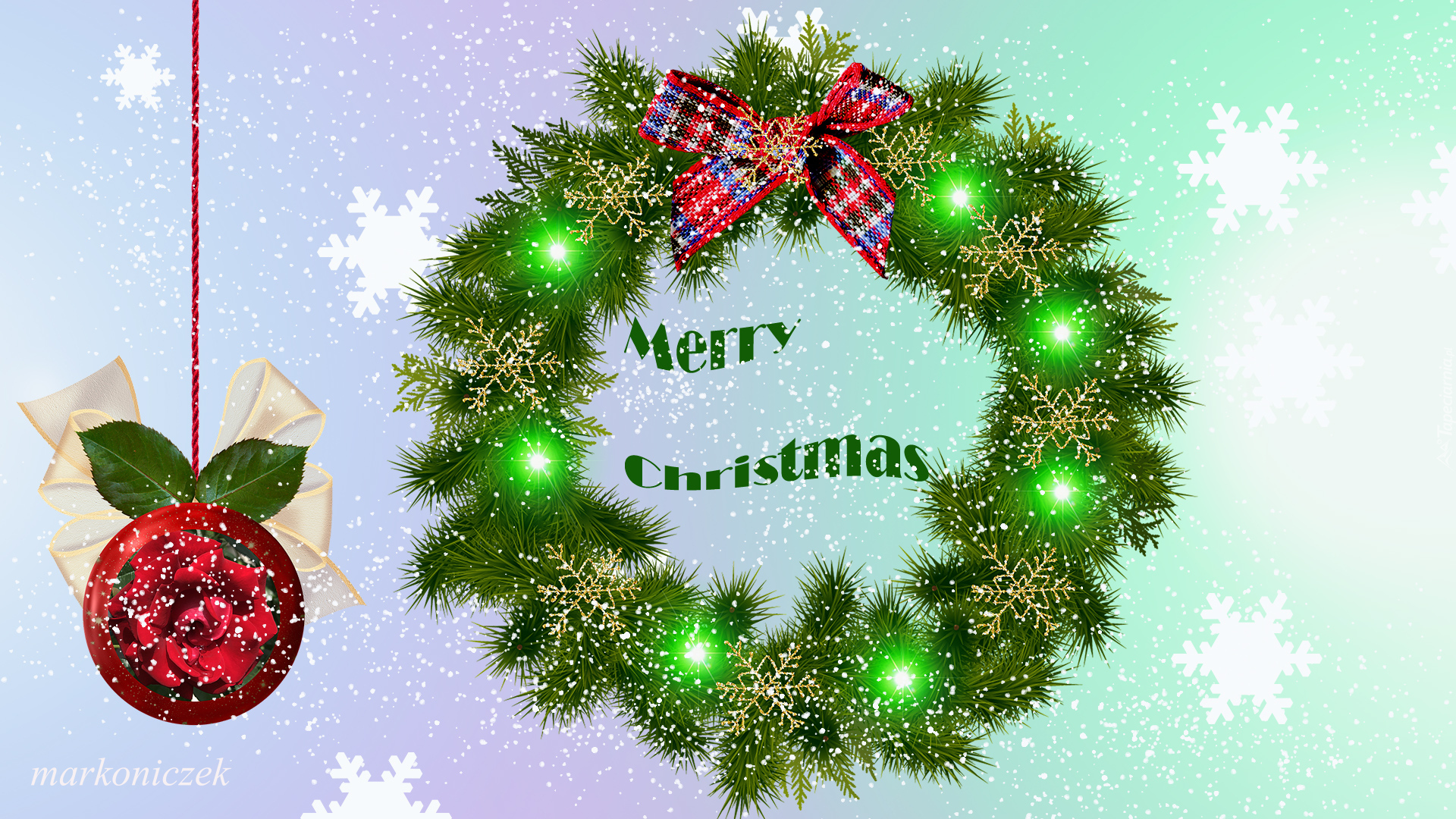 Edytor tapety: Wieniec świąteczny z życzeniami