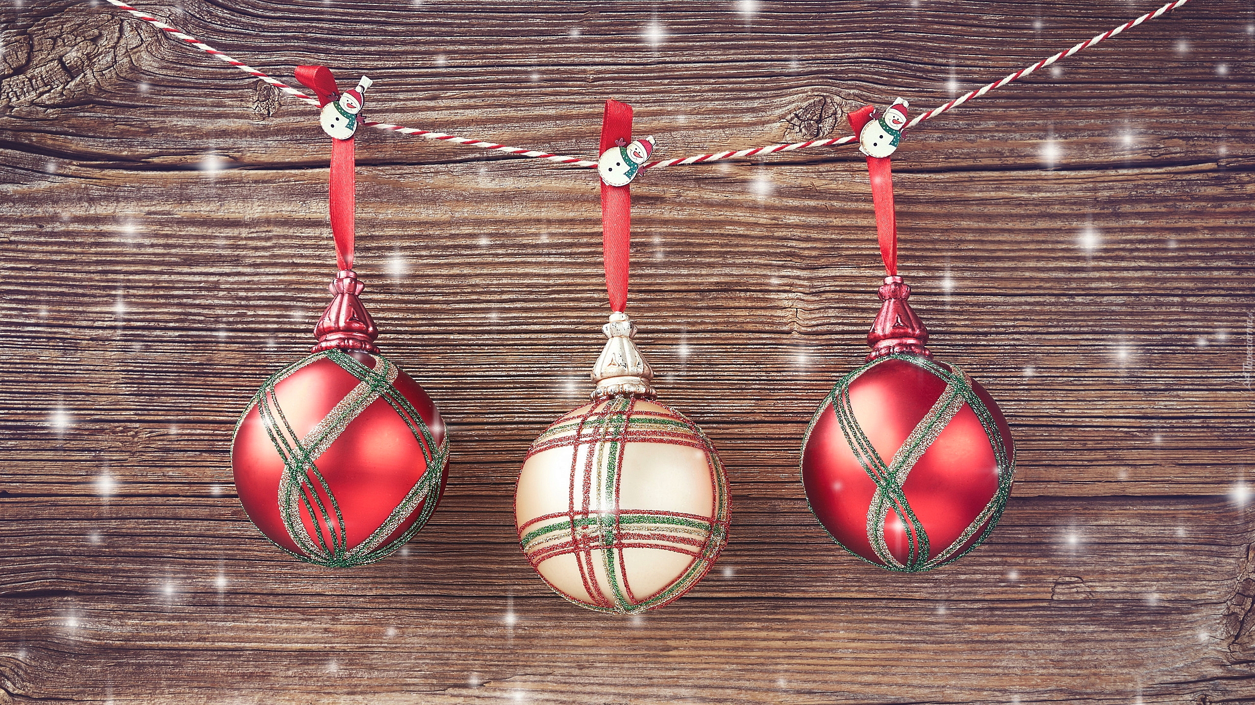 Edytor tapety: Trzy bombki wiszące na sznurku