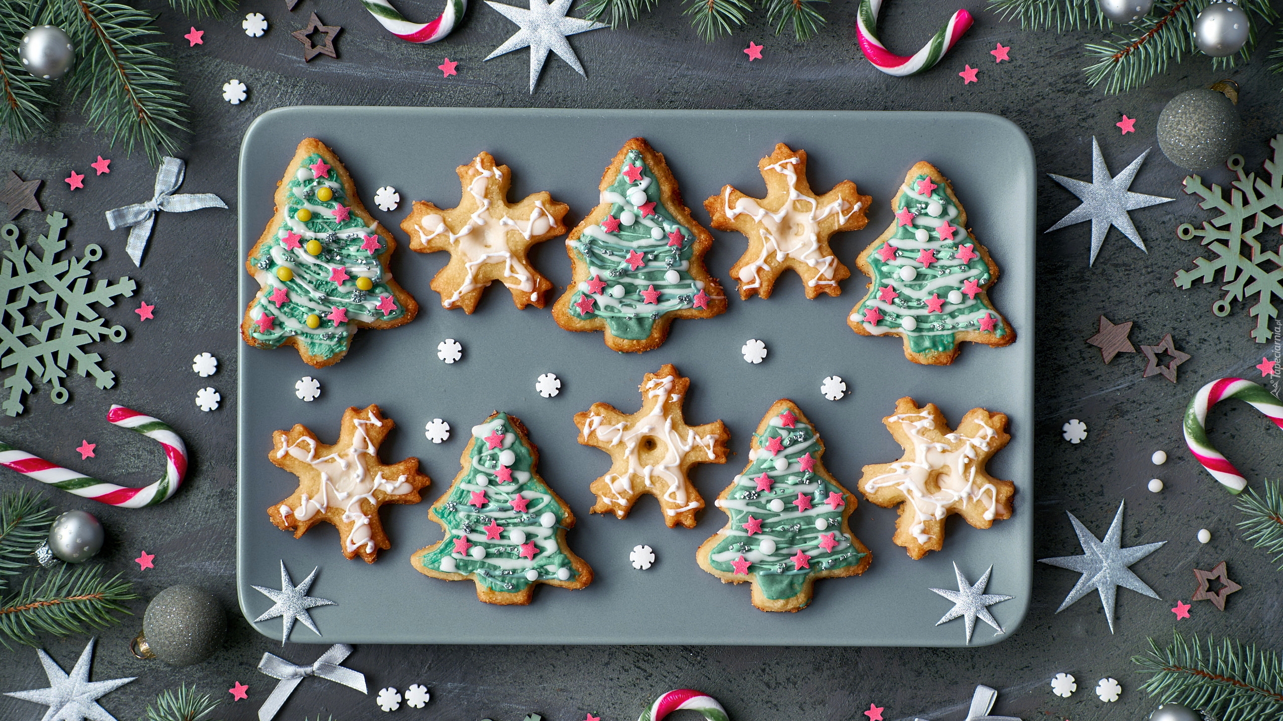 Edytor tapety: Piernikowe gwiazdki i choinki na talerzu