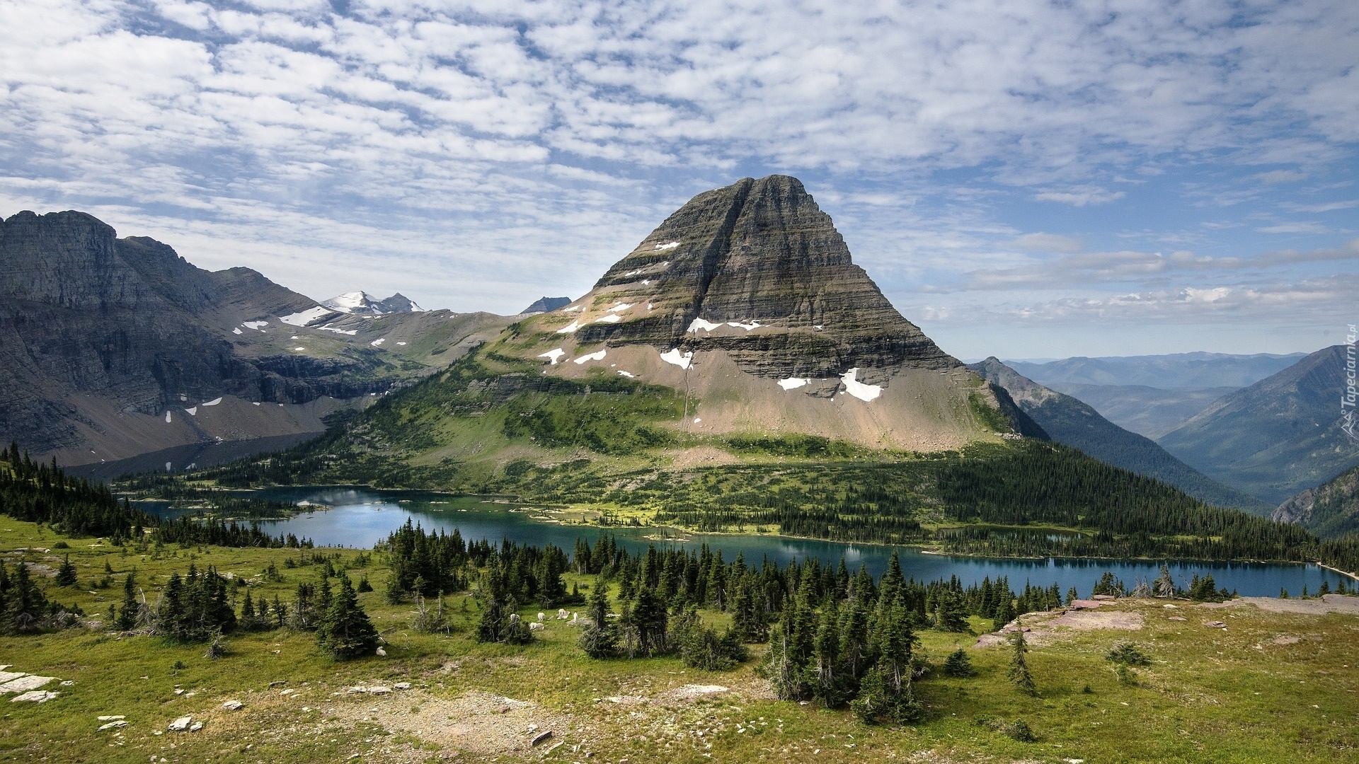 Edytor tapety: Góra Berhat Mountain otoczona jeziorem Hidden Lake