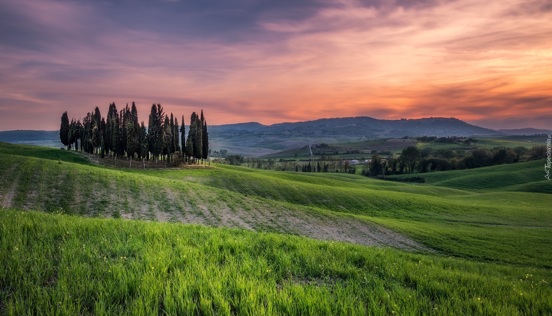 Edytor tapety: Cyprysy na zielonych polach Toskanii