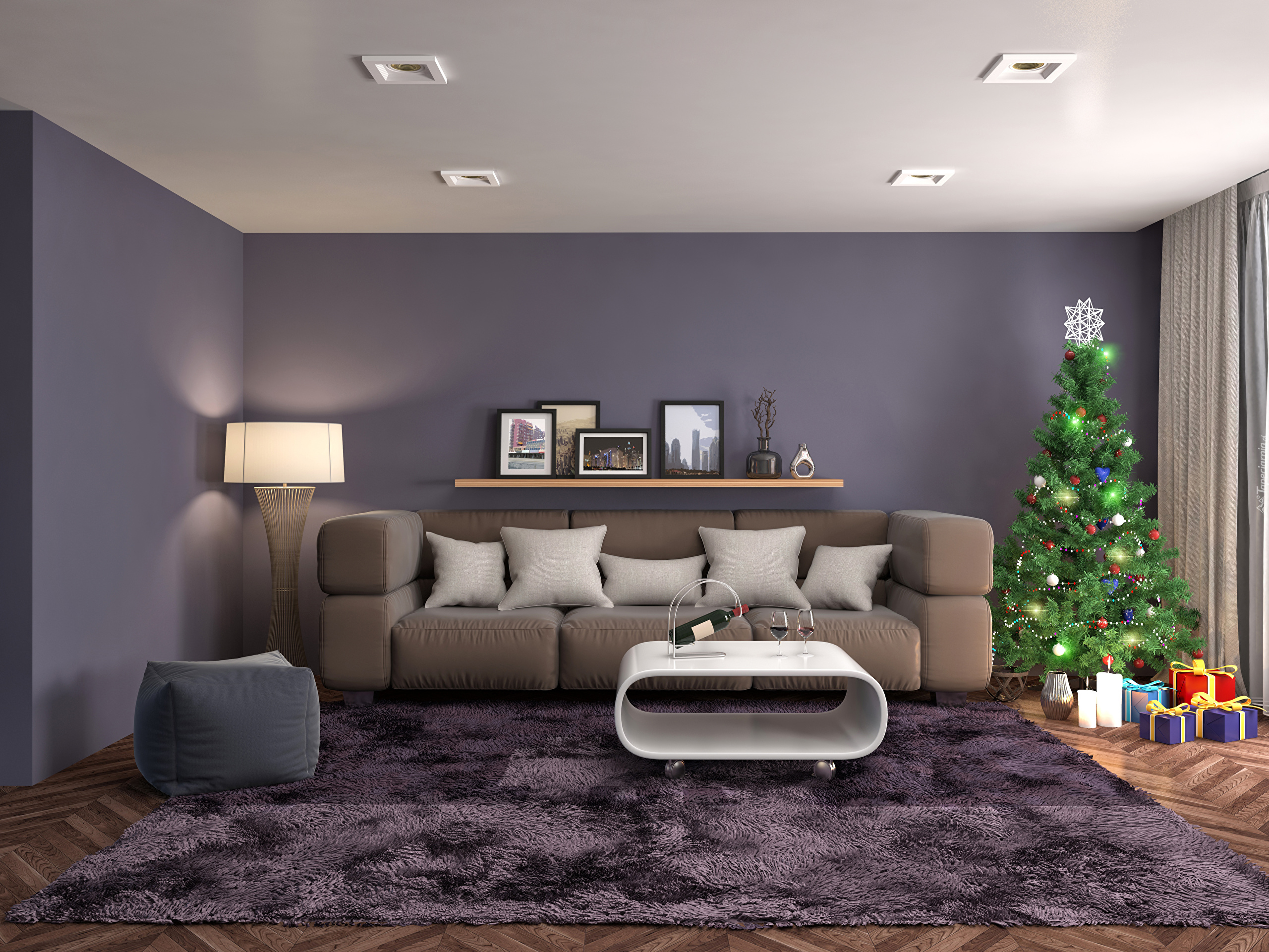 Edytor tapety: Choinka ustawiona obok kanapy