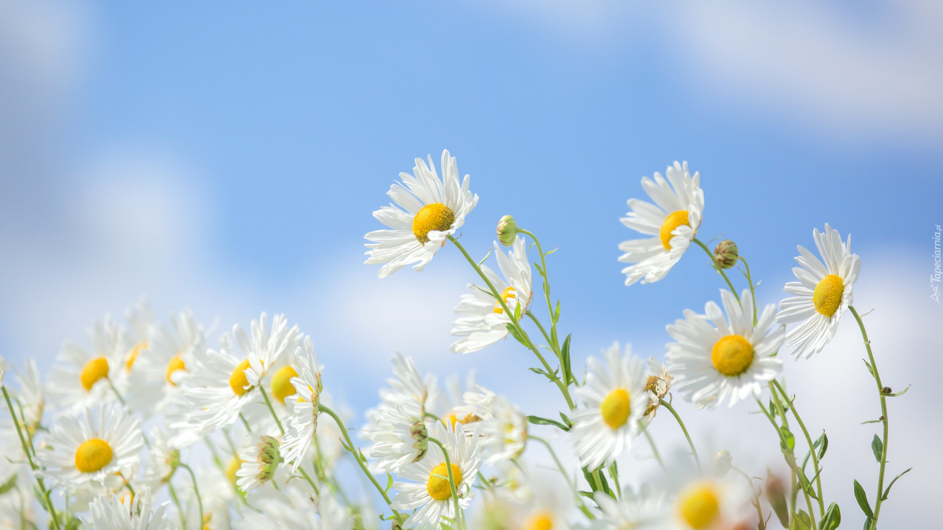 Edytor tapety: Margerytki na tle niebieskiego nieba