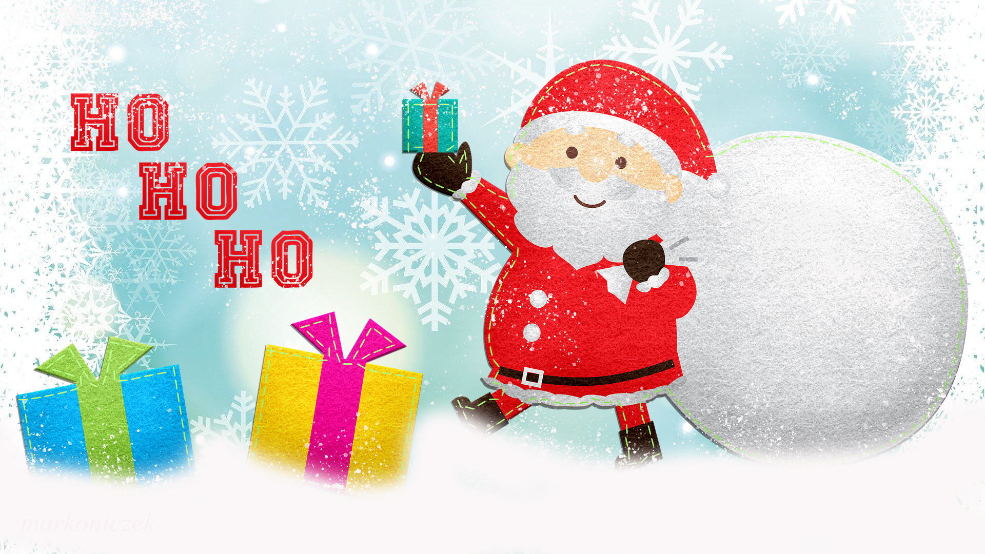 Edytor tapety: Grafika z Mikołajem i prezentami