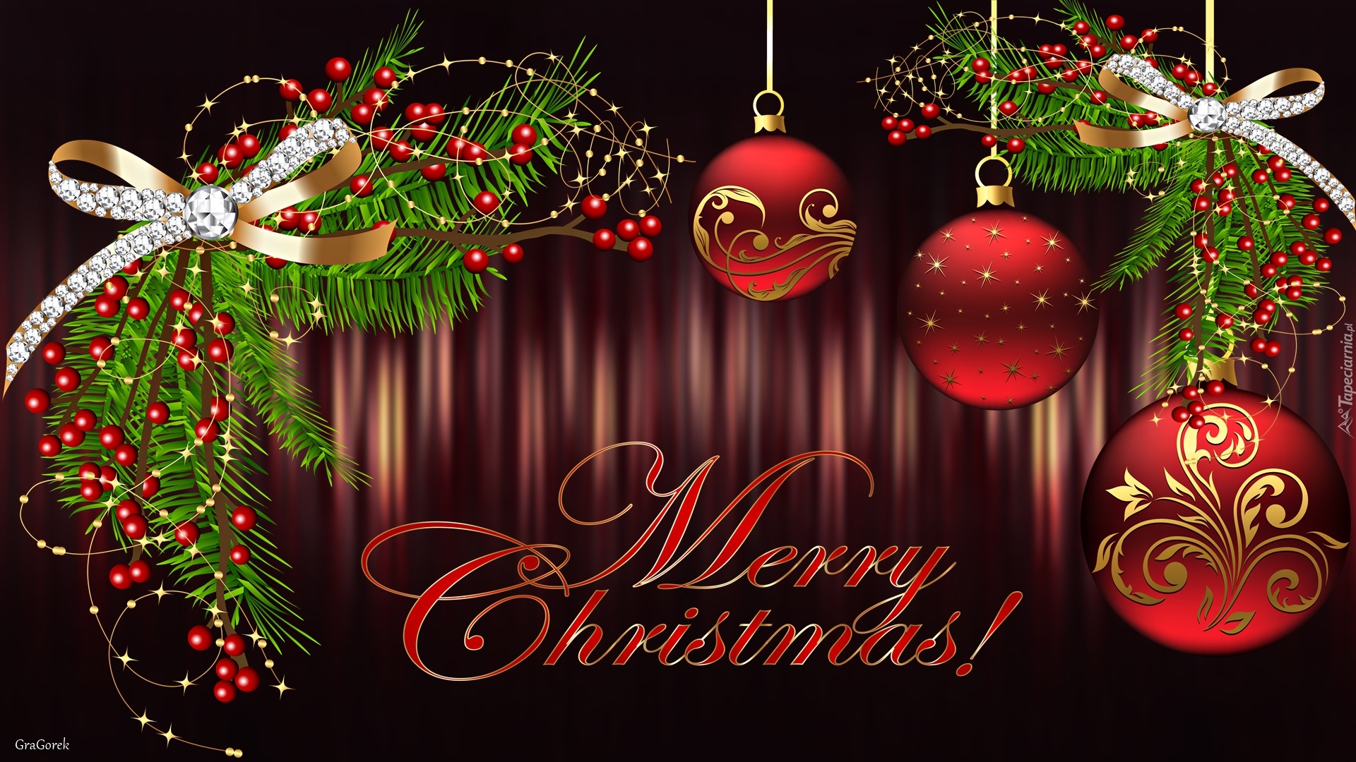 Edytor tapety: Grafika z gałązkami i bombkami