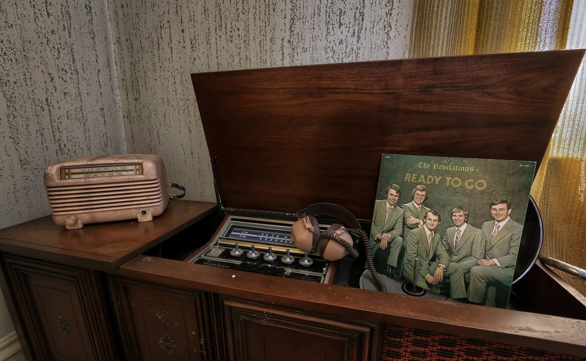 Edytor tapety: Płyta winylowa obok starego sprzętu muzycznego