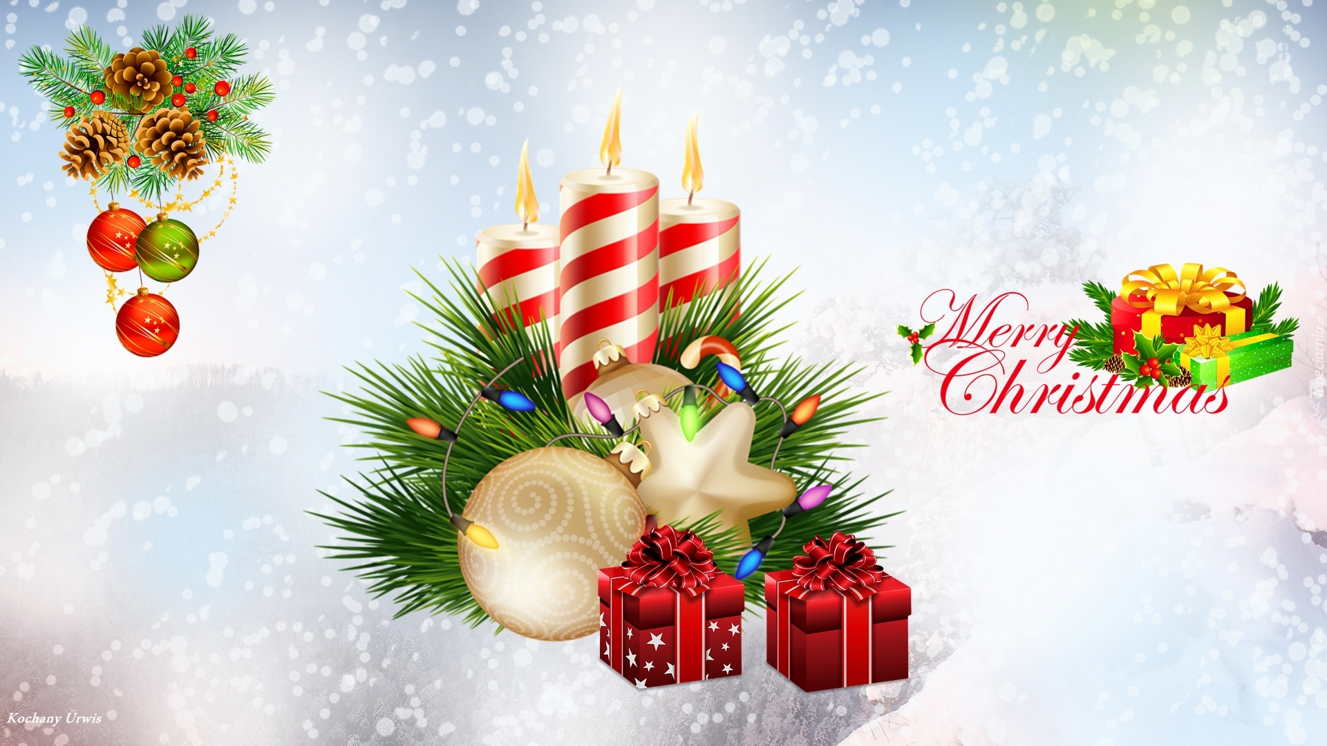 Edytor tapety: Stroik bożonarodzeniowy z życzeniami w grafice
