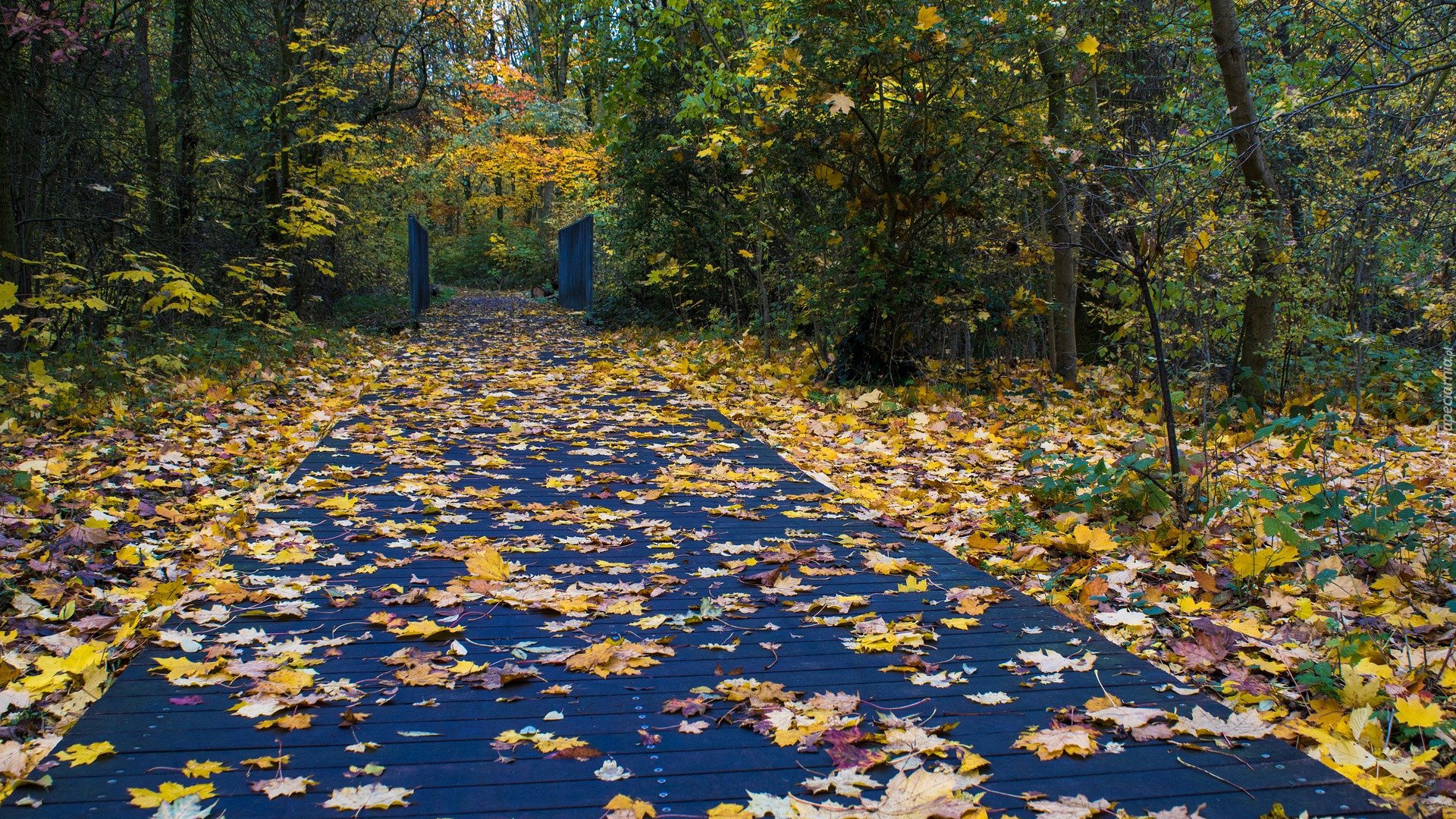 Edytor tapety: Opadłe liście na drodze w parku