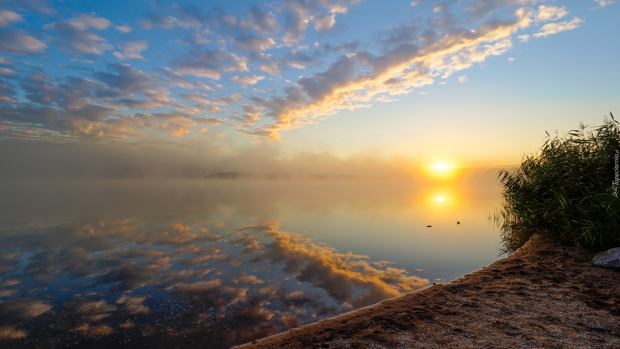 Edytor tapety: Wschód słońca nad jeziorem Steinberger See
