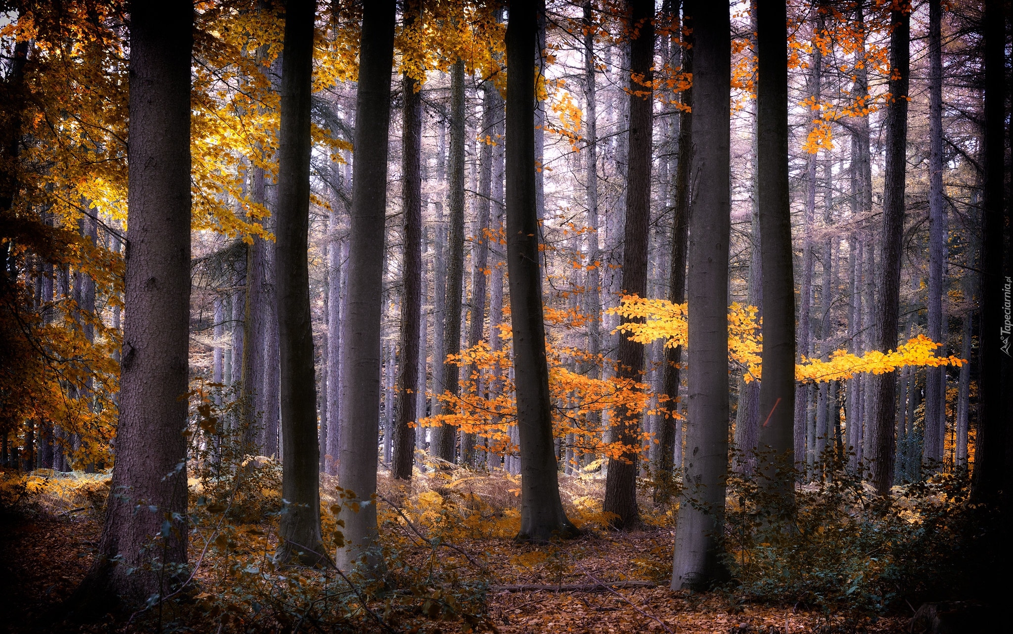 Edytor tapety: Wysokie drzewa w jesiennym lesie