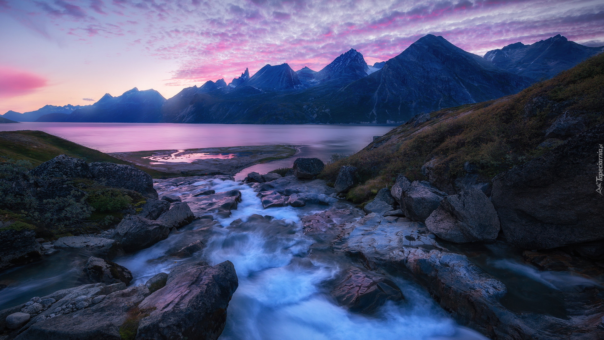 Edytor tapety: Rzeka wpadająca do grenlandzkiego fiordu