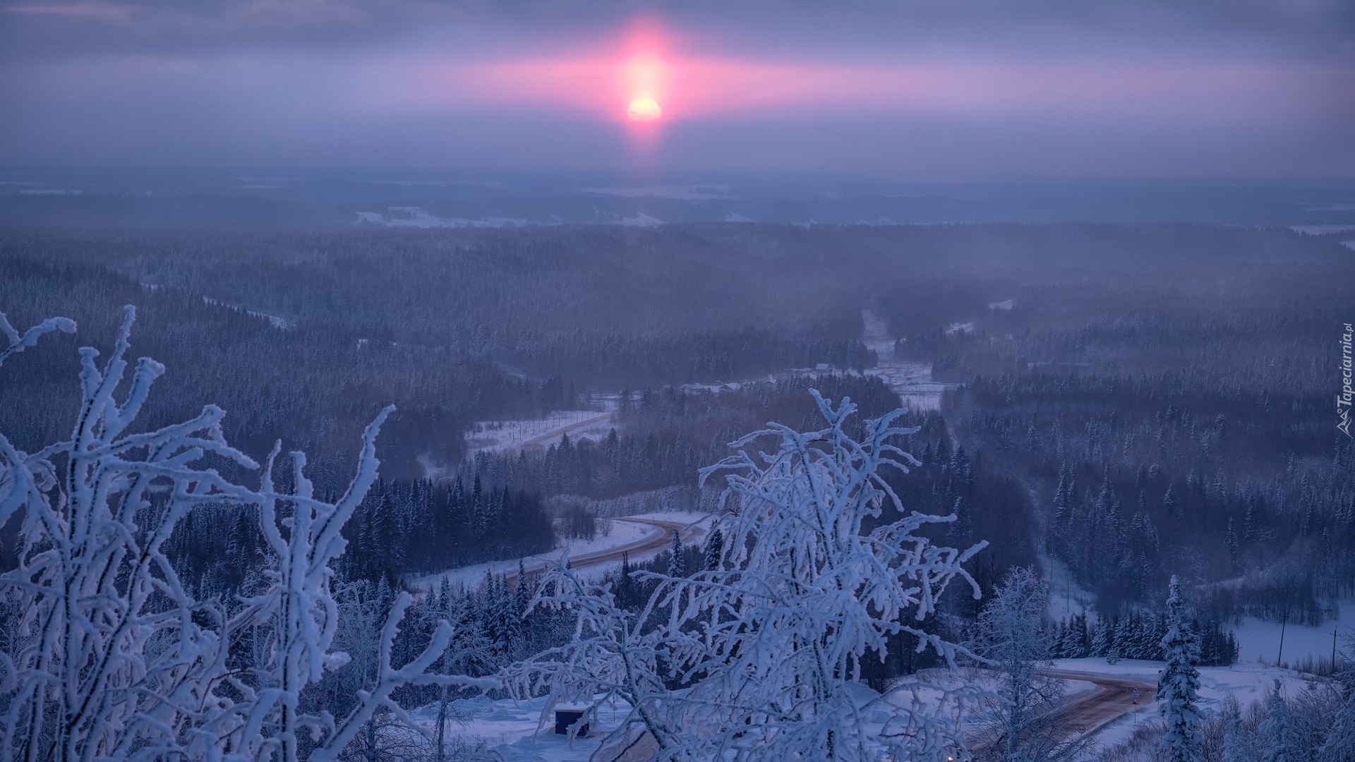Edytor tapety: Widok z Białej Góry na zimowy zachód słońca