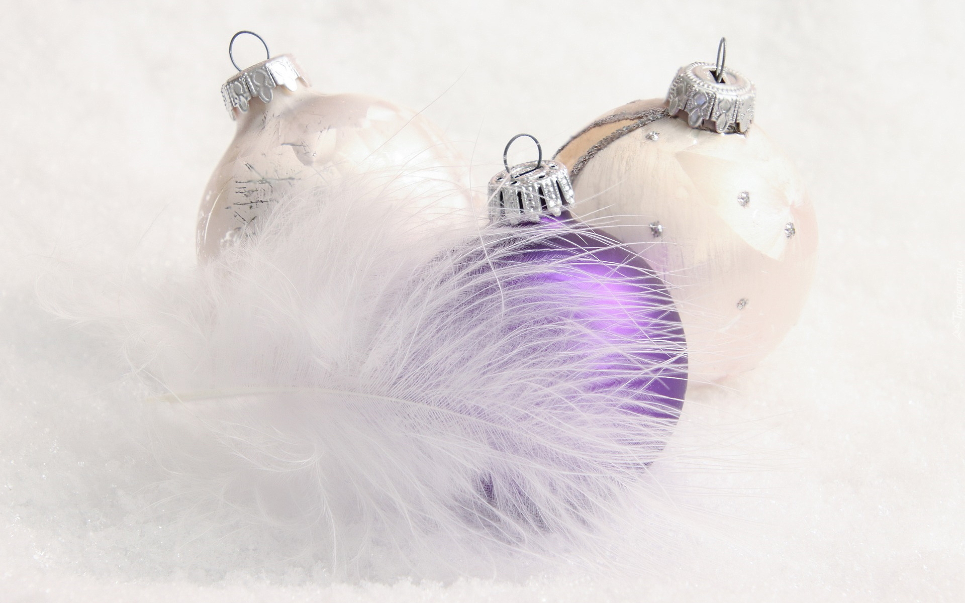 Edytor tapety: Białe piórko przy bombkach