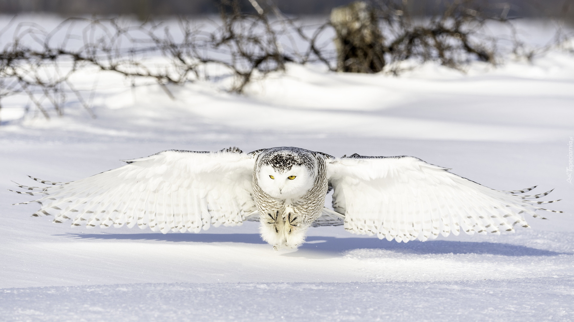 Edytor tapety: Sowa śnieżna z rozpostartymi skrzydłami