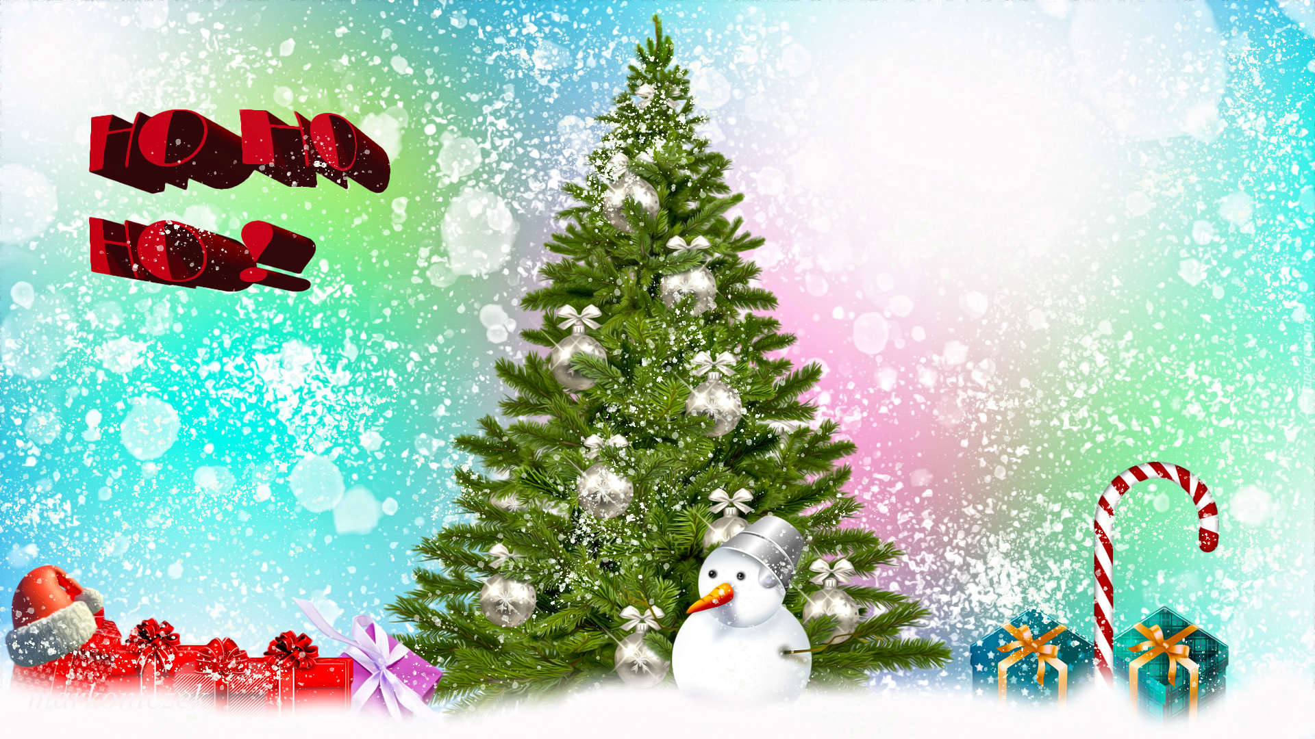 Edytor tapety: Bałwanek pod choinką w grafice