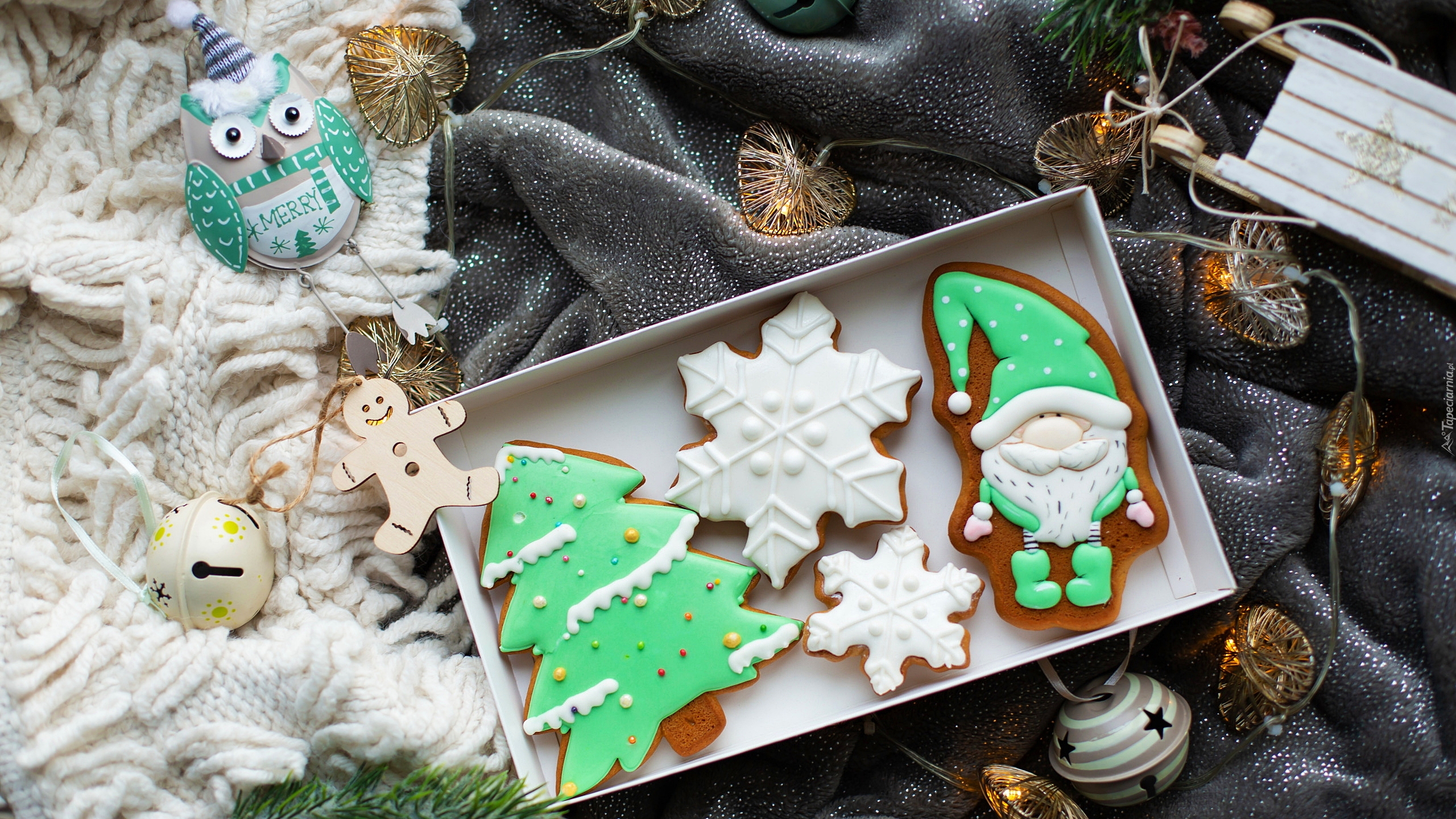 Edytor tapety: Świąteczne pierniczki w pudełku