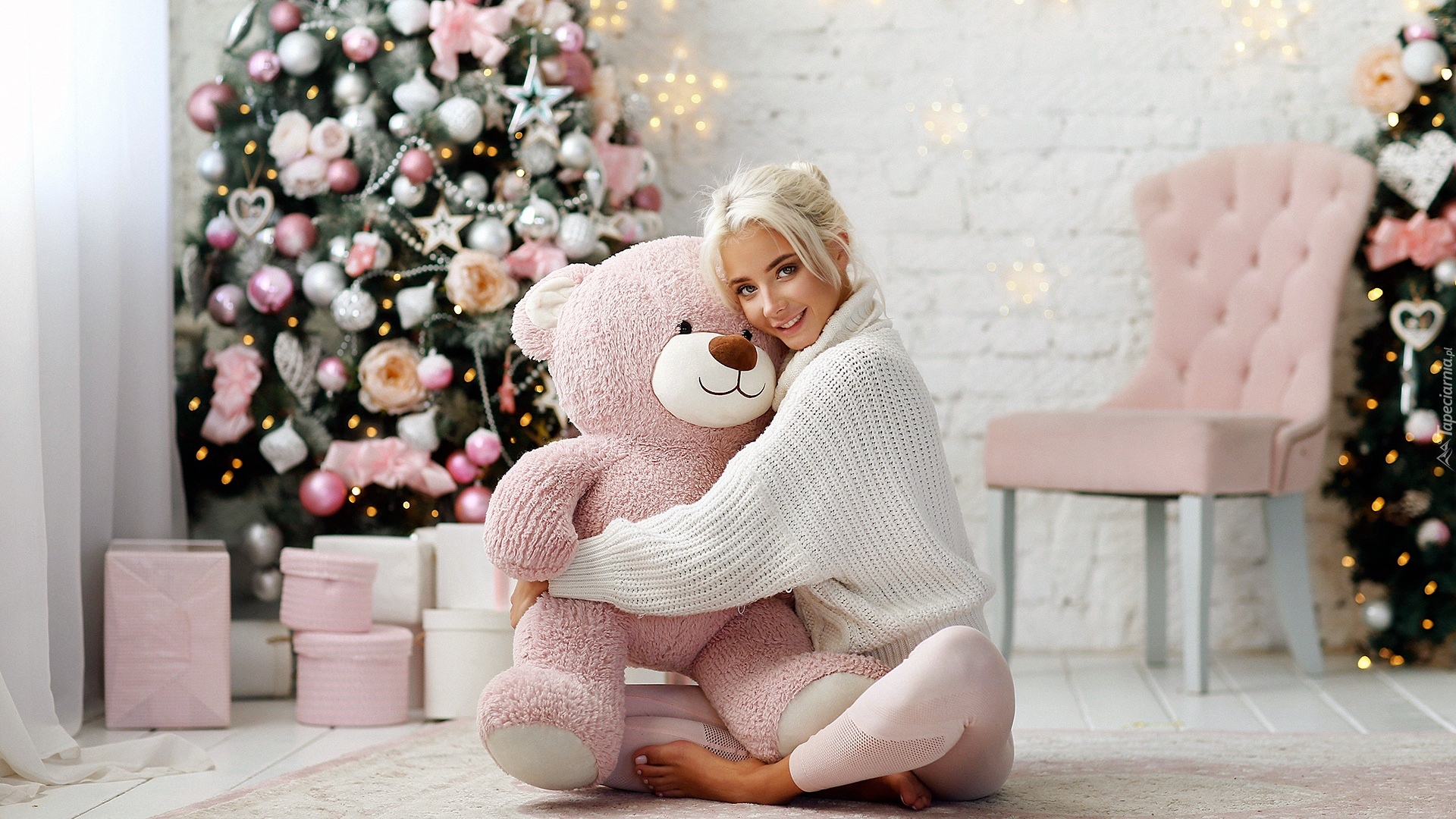 Edytor tapety: Blondynka z pluszowym misiem