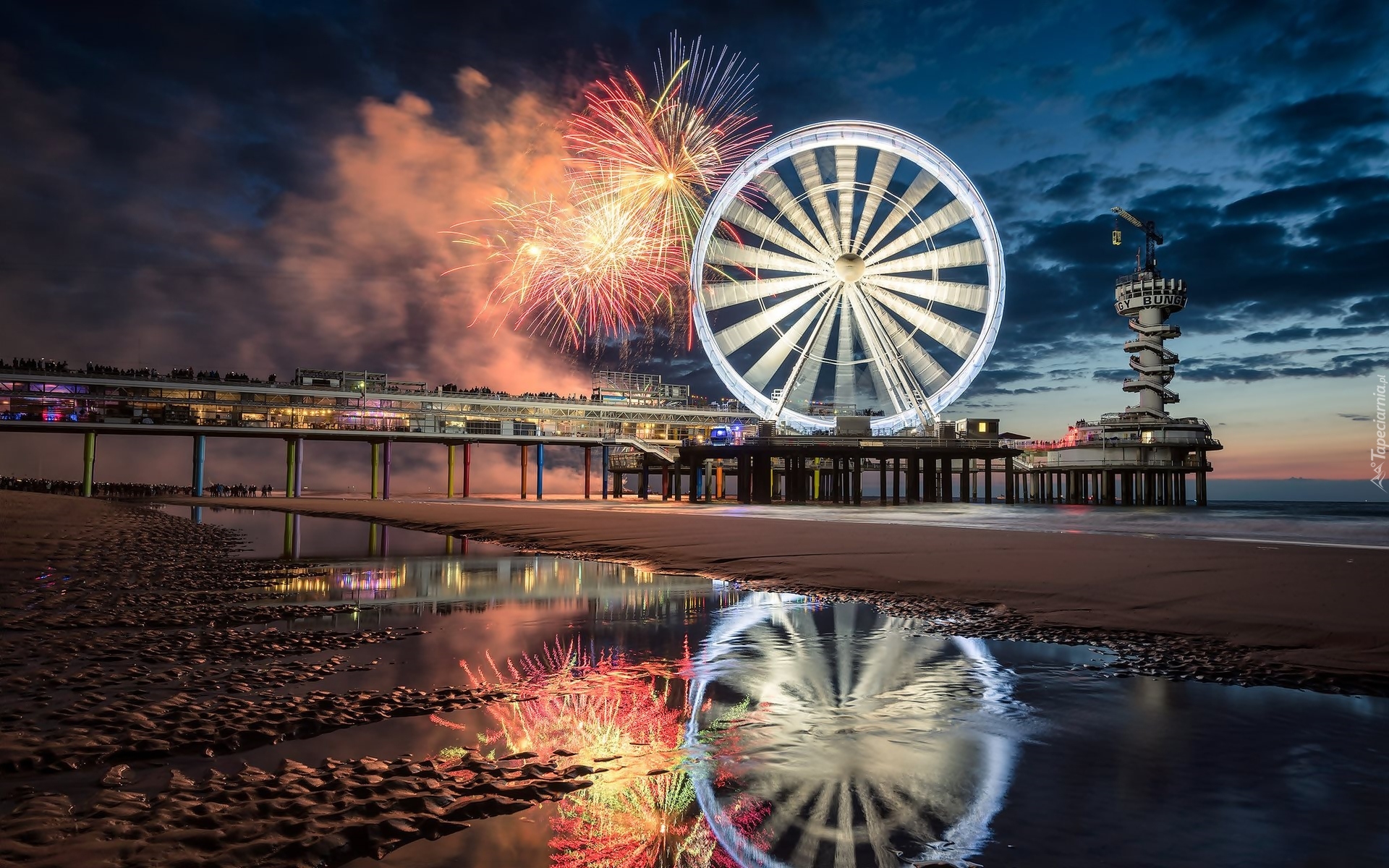 Edytor tapety: Fajerwerki nad molem w Scheveningen