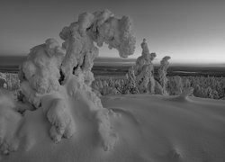 Edytor tapety: Ośnieżone świerki w zaspach śnieżnych