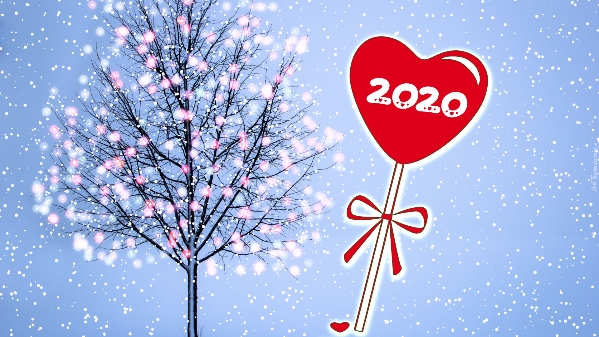 Edytor tapety: Drzewko i serce z cyframi 2020