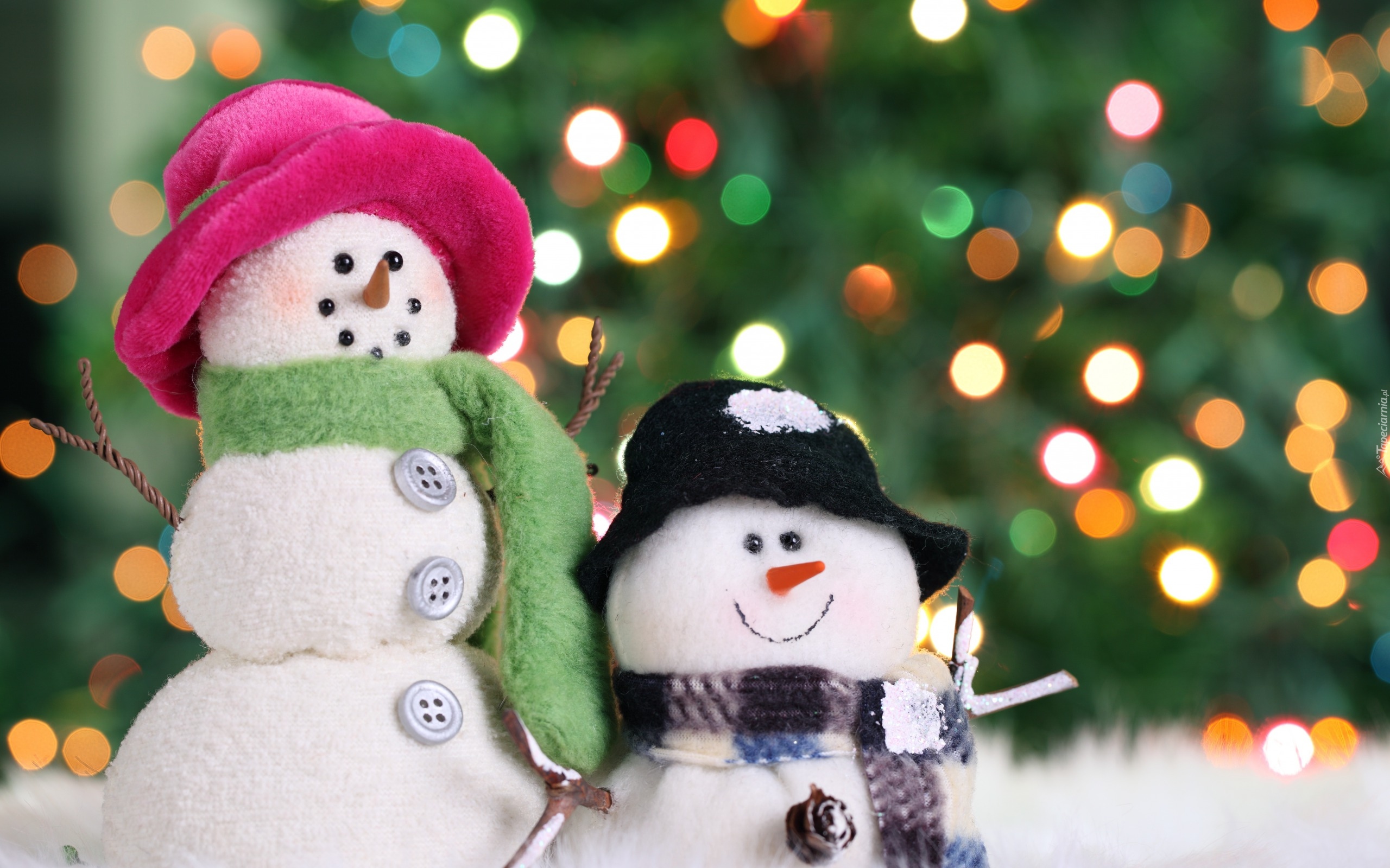 Edytor tapety: Dwa bałwanki w czapkach i szalikach