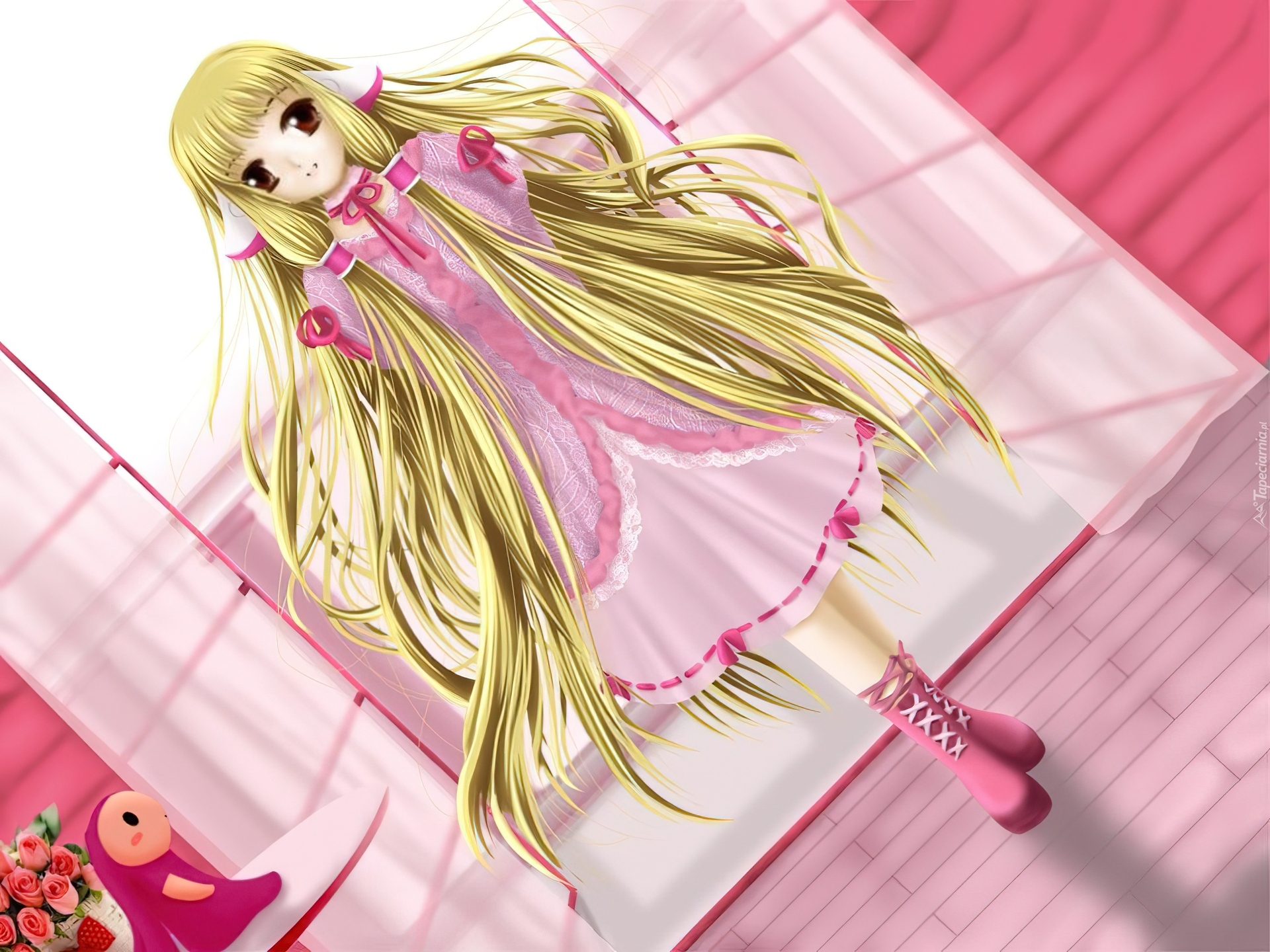 Edytor tapety: Chobits, dziewczyna, włosy, sukienka