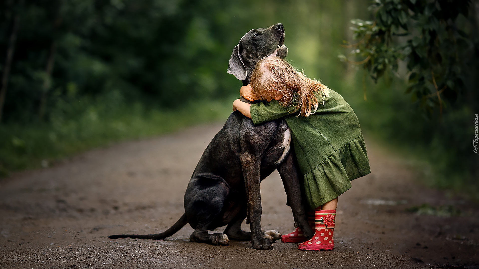 Edytor tapety: Dziewczynka przytulona do dużego psa