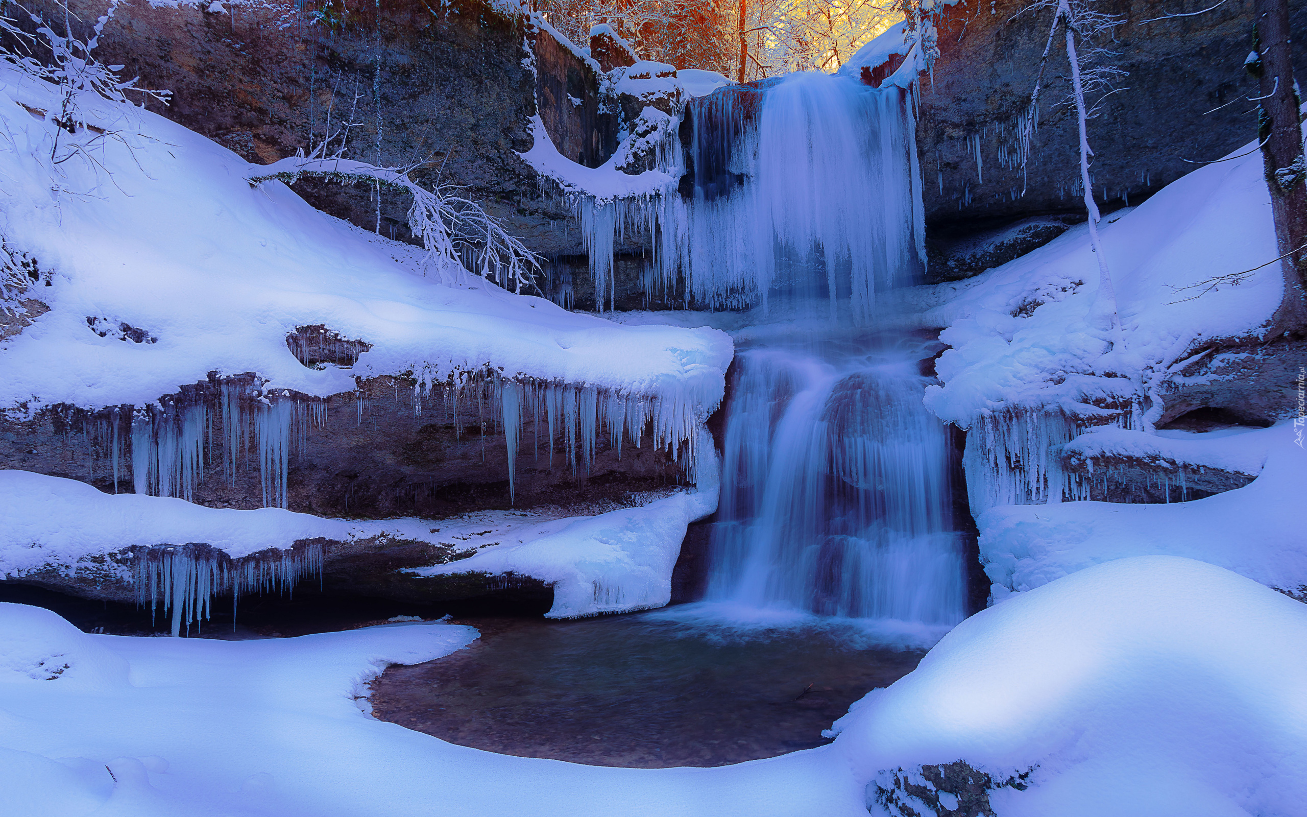 Edytor tapety: Sople na skale przy wodospadzie